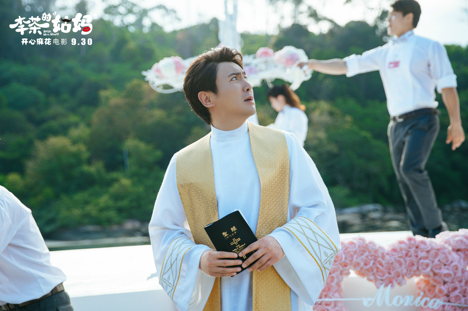 此次《李茶的姑妈》,也齐聚了众多观众熟悉的麻花演员,其中,沈腾一出场就让观众“乐喷”,电影里他饰演的牧师,主持了一场别开生面的三人婚礼,金句频出,十分“有梗”。常远则一改往日的形象,饰演一位帅气的酒保,贡献了超多包袱。