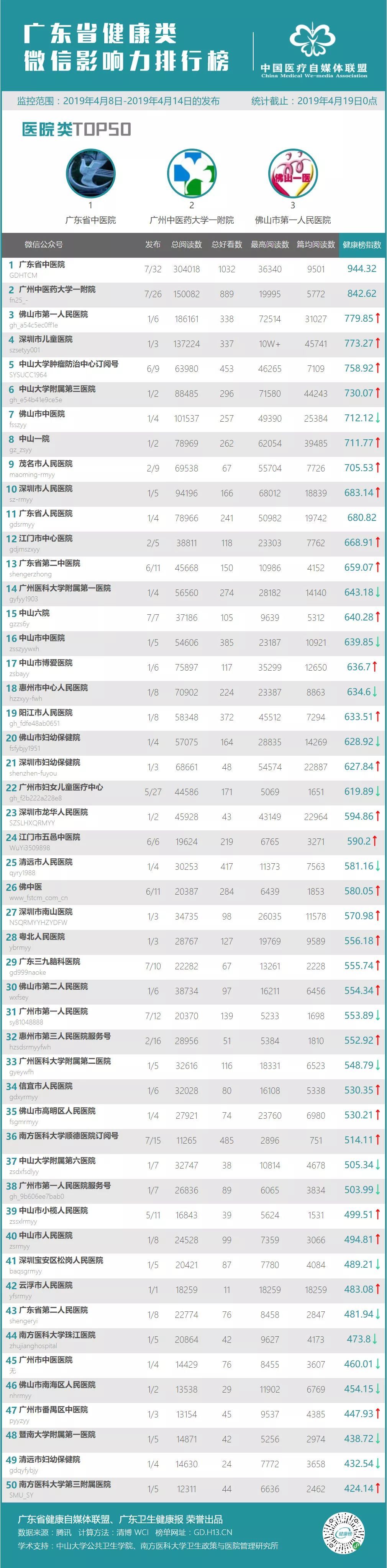 本次榜单统计的总体为广东省健康自媒体联盟(中国医疗自媒体联盟广东分盟)所有成员微信公众号共772个,统计时段为2019年4月8日到4月14日,统计截止2019年4月19日零时。