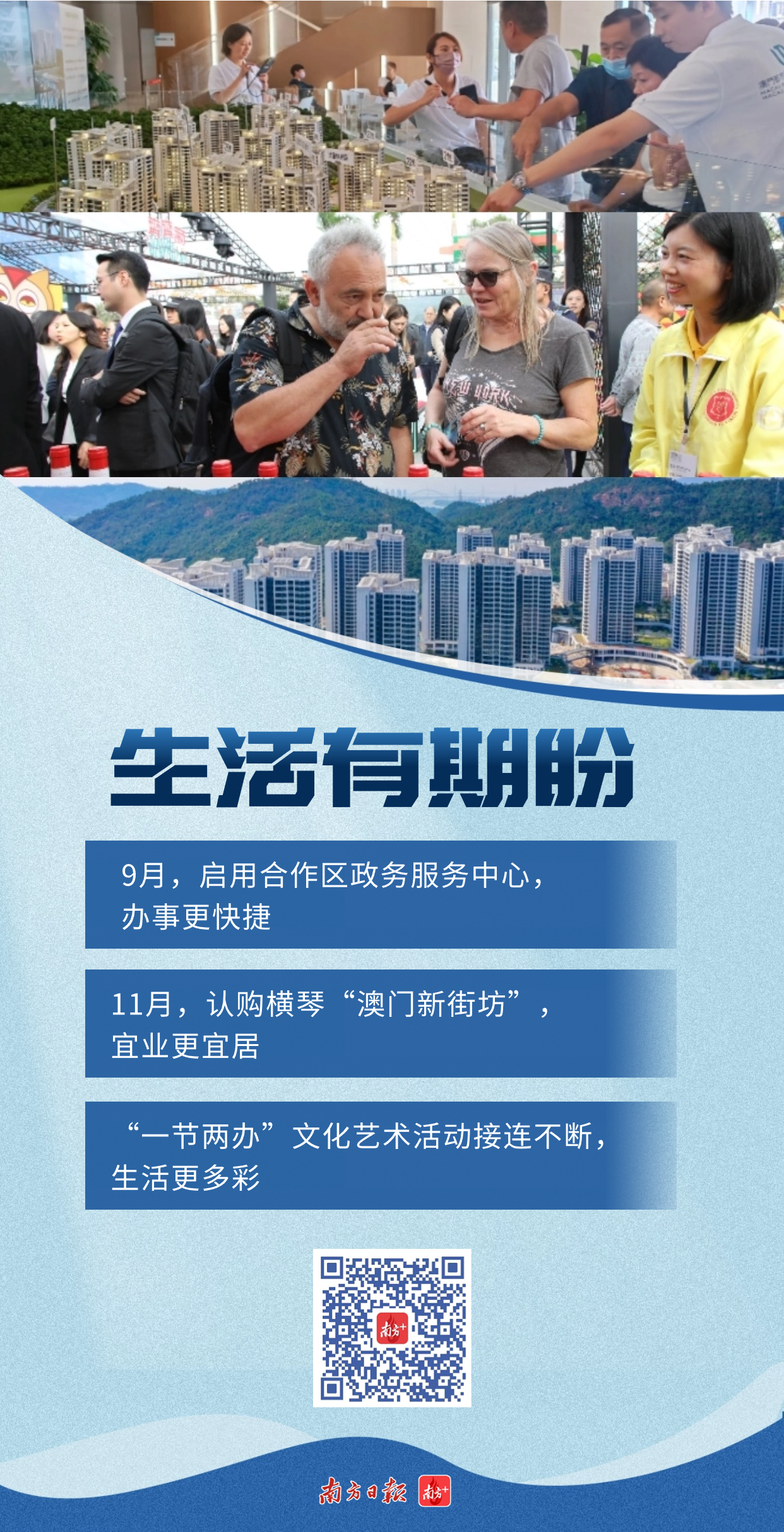 11月28日,横琴“澳门新街坊”项目接受认购。项目设有4000多个住宅单位,5000多平方米的商业空间,配套学校、卫生站、长者服务中心及社区服务中心。对接澳门教育、医疗、社会服务、交通等民生公共服务和社会保障体系,为居民营造趋同澳门的宜居生活环境。