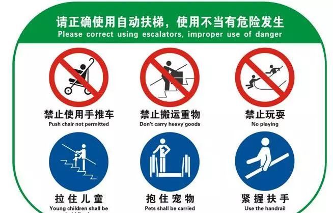 扶梯安全指南明确规定:请勿推轮椅或婴儿车乘梯。