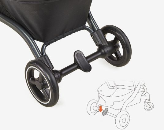 最好选择具有“一踩双刹”功能的婴儿推车,一脚踩下去就能同时刹住两个轮子。