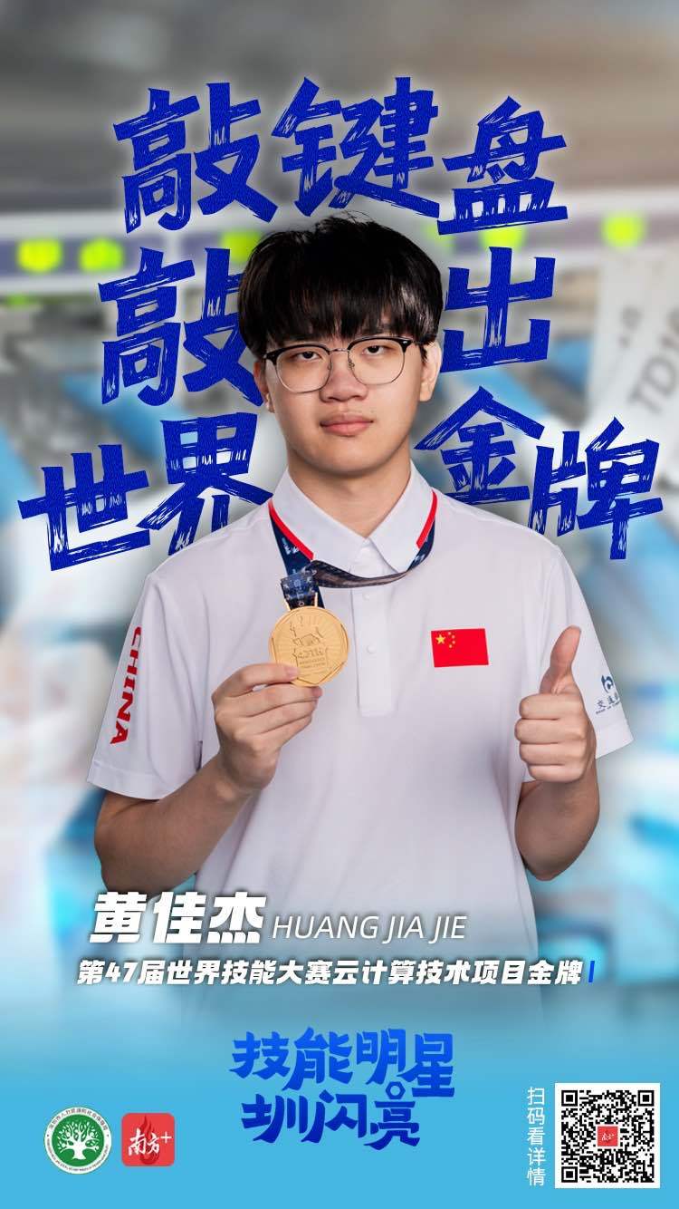 黄佳杰,第47届世界技能大赛云计算技术项目的金牌得主