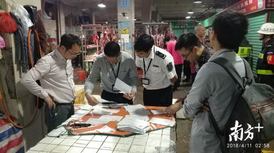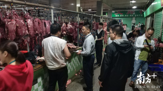 据深圳市食品药品监督管理局通报,接获知相关舆情后,该局高度重视,立即部署,组织龙岗局科所联合平湖街道凤凰社区工作站、街道食品安全快速检测室等单位对平湖市场进行突击检查。4月10日晚至11日凌晨,根据媒体报道的新闻线索,执法人员认真对现场在营的5户牛肉档进行检查,重点检查牛肉产品索证索票情况,逐户查验《动物产品检疫合格证明》、《肉品品质检验合格证》,发现当天所售牛肉均来自深圳市中龙食品有限公司(深圳市4号屠宰场),经使用中国动物检疫专用识读器识别,有关检疫证书均有效。