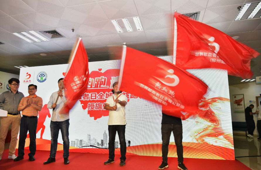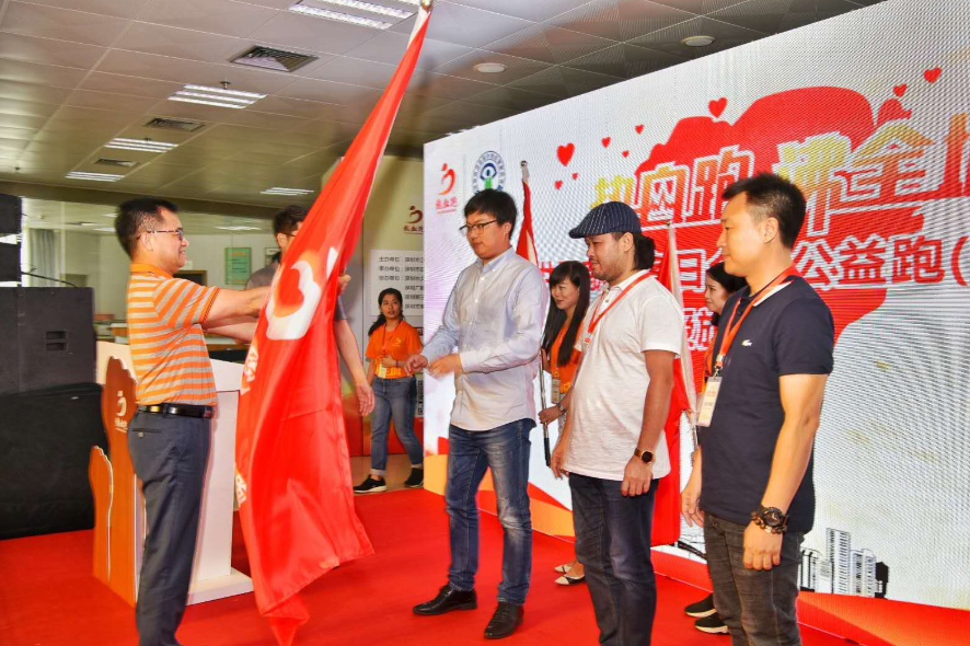 在发布会现场,举行了“热血跑 沸全城”活动旗帜的交接仪式,常州市、南昌市、柳州市等地的举办方接过深圳这面旗帜(6月常州站-热血跑 沸龙城;6月南昌站-热血跑 沸洪城;10月柳州站-热血跑 沸壶城),将热血公益继续传递,让生命不息。