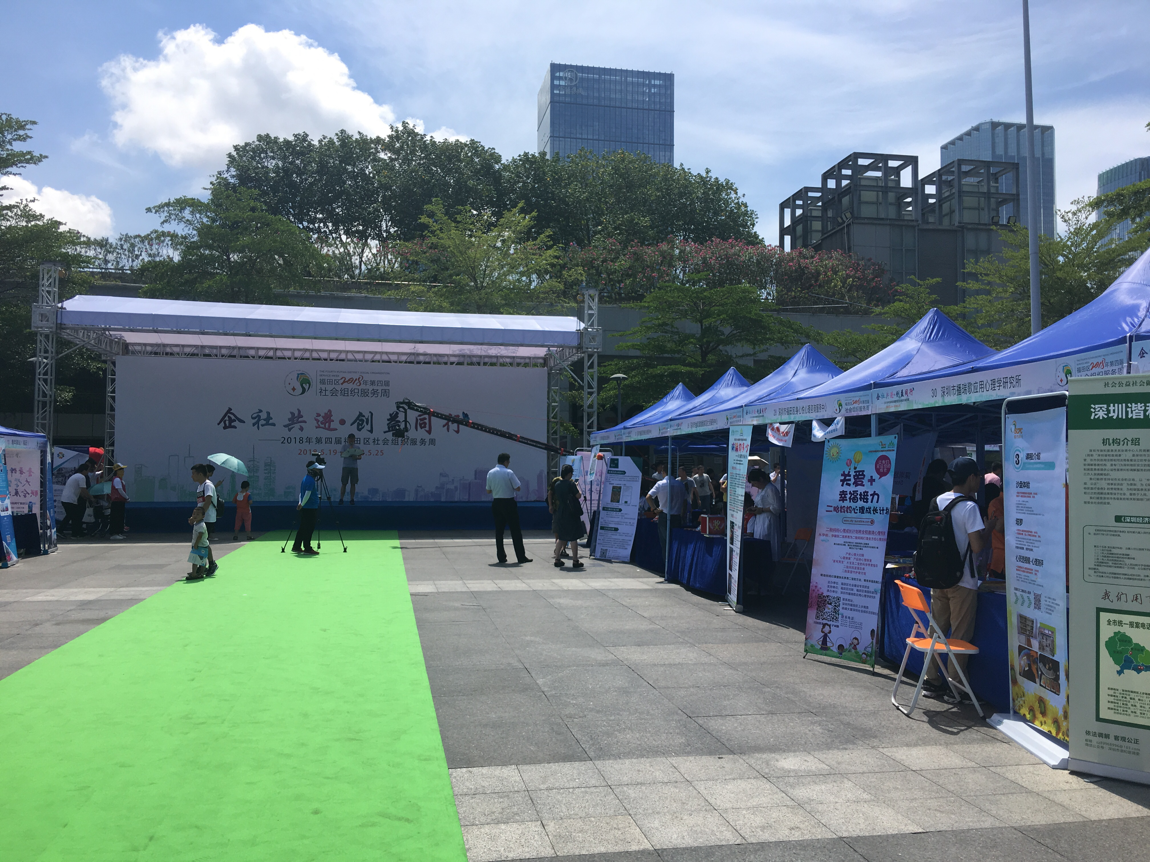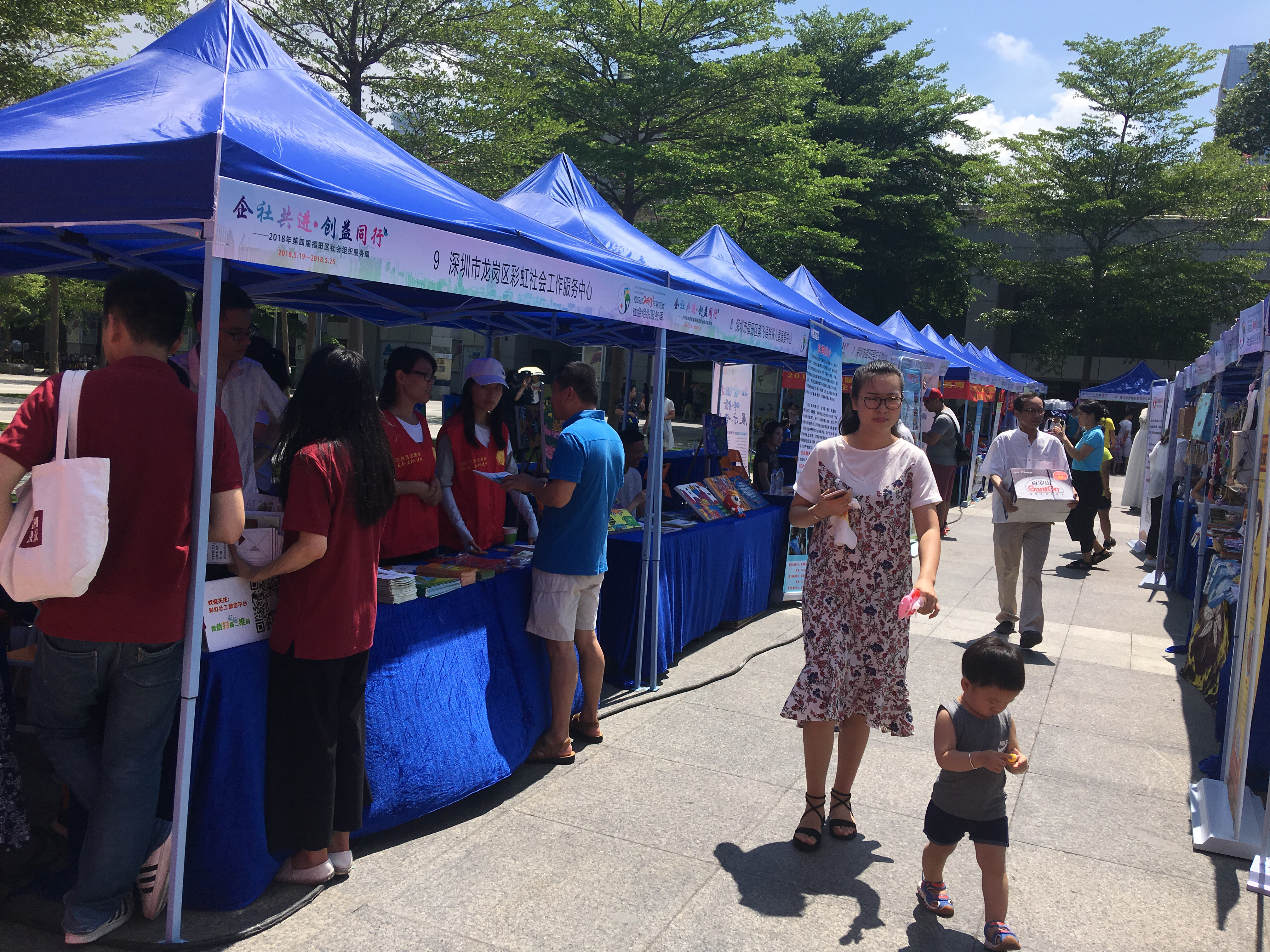 5月19日上午,由中共深圳市福田区委政法委(社工委)、福田区民政局指导、深圳社会组织总部基地(福田)主办、深圳市福田区企创非营利组织发展中心承办的“企社共进•创益同行——2018年第四届福田区社会组织服务周”大型集中展会在深圳中心书城北广场顺利开展。