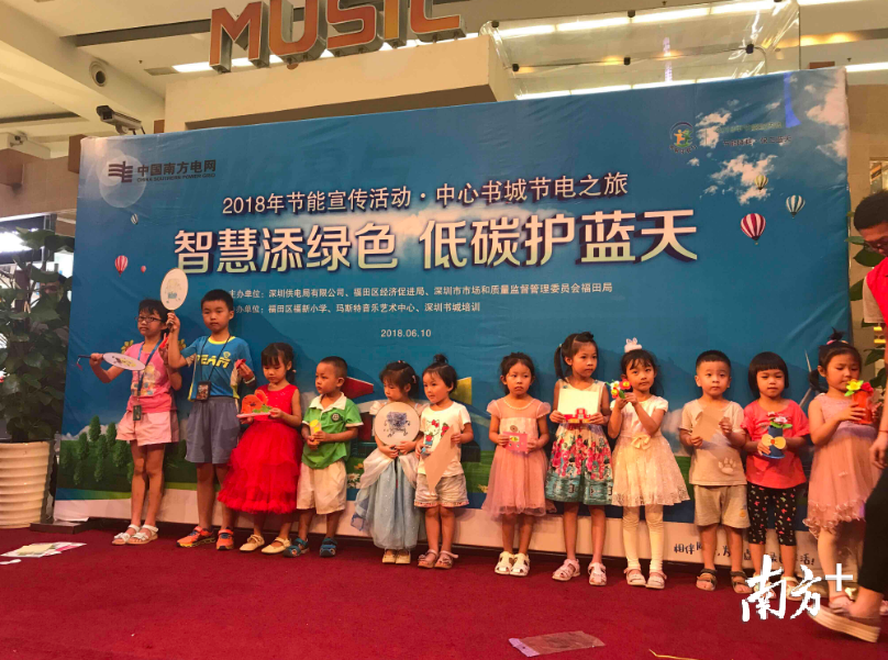 6月10日下午,深圳中心书城北区大台阶热闹非常,小朋友们在家长的陪同下观看电力科普视频、玩趣味游戏、学安全用电知识……在“智慧添绿色 低碳护蓝天”的安全用电宣传活动中开启快乐的电力之旅。