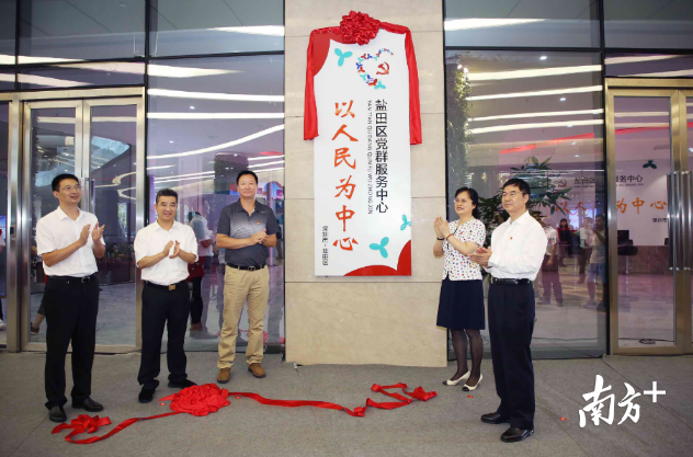 6月29日,盐田区在盐田现代产业服务中心举办区党群服务中心启用仪式暨“不忘初心牢记使命”七一主题党日活动。活动中,区领导杜玲、梁景海、武威、黄伟平、姚刚共同为区党群服务中心揭牌。