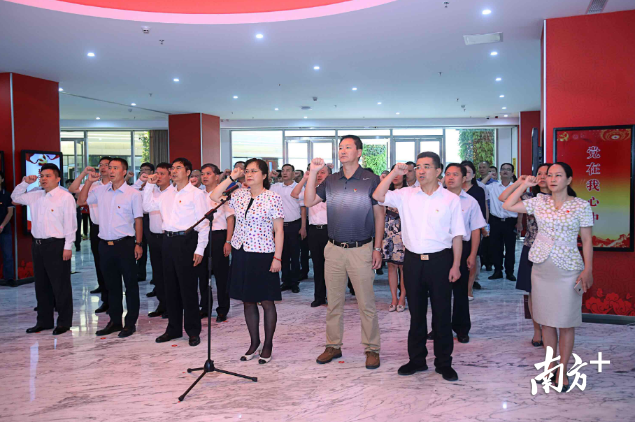 启用仪式结束后,盐田区举行了“不忘初心牢记使命”主题党日活动,全体人员共同观看了区党建巡礼专题片,参观了纪念建区20周年党的历史和党建工作巡礼展览。最后,主题党日活动在重温入党誓词中庄严结束。