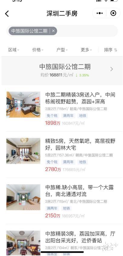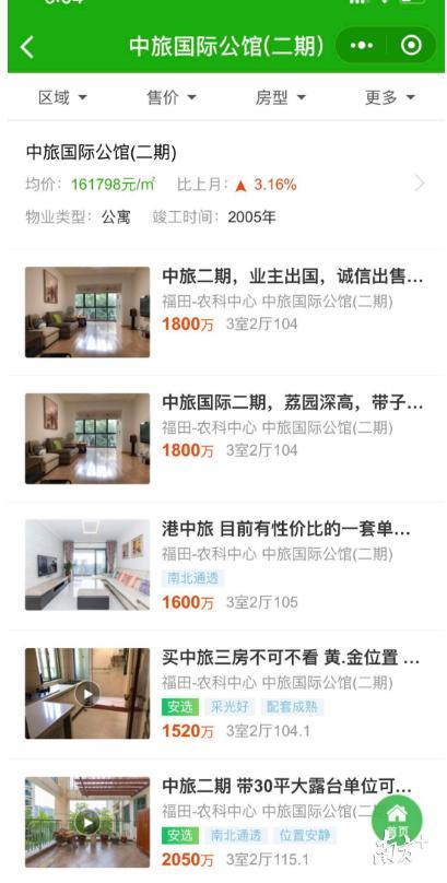 随后,记者看到,链家网上均价15万+的深圳房源已经逐步重新上架,只是暂时搜不到中旅国际公馆二期的房源。