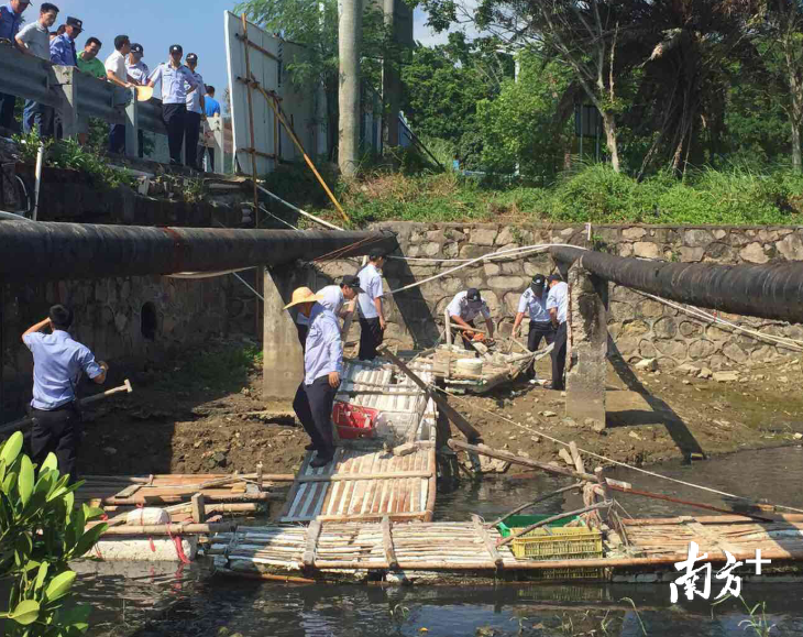 为了躲避检查,一部分竹筏还被藏在桥洞、隐秘草丛里。不过,这也没有逃过执法工作人员的“火眼金睛”。工作人员将查获的竹筏集中到河边宽敞地带,随后,农林水务管理中心森林消防中队(护林队)队员利用电锯等工具进行切割、拆除。
