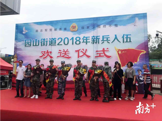 自9月7日起,龙岗区2018年夏秋季入伍新兵开始启程奔赴各地部队。今年,园山街道有6人通过严格的体检和政审成为入伍新兵。9月10日下午,园山街道举办2018年度新兵入伍欢送仪式,向应征入伍新兵及家人表示诚挚敬意。