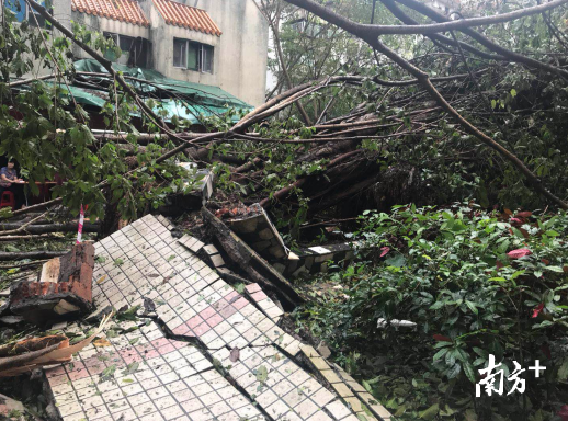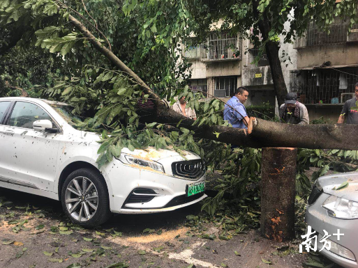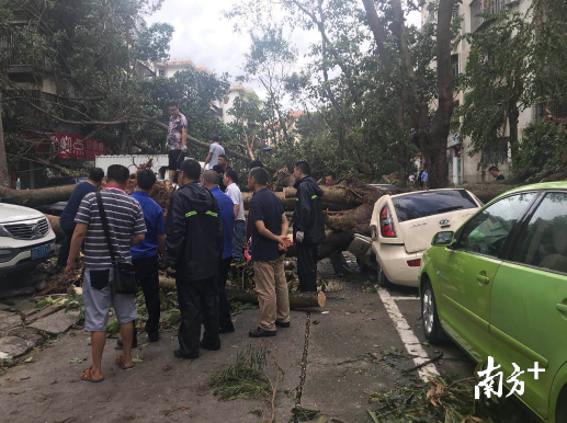 17日下午3点,布心小学附近的布心花园一期,电锯的嘈杂声此起彼伏。据东湖街道城区治理办黄志胜介绍,街道辖区内倒伏树木有500多棵,首先要清理主次干道,保证车辆通行。为了提高道路清理效率,除了40人的应急分队外,近百名的清扫保洁人员和10台车清运车也很快就位,还调动了专业队伍对悬在半空中的高大树木进行清理。翠湖社区工作站站长张志辉表示,由于附近种植树木大多是小榕树,头重脚轻,没有庞大的根系,虽然在台风到来前已经给树木做了修剪和处理,但由于台风强度过大,还是有很多树被连根拔起。