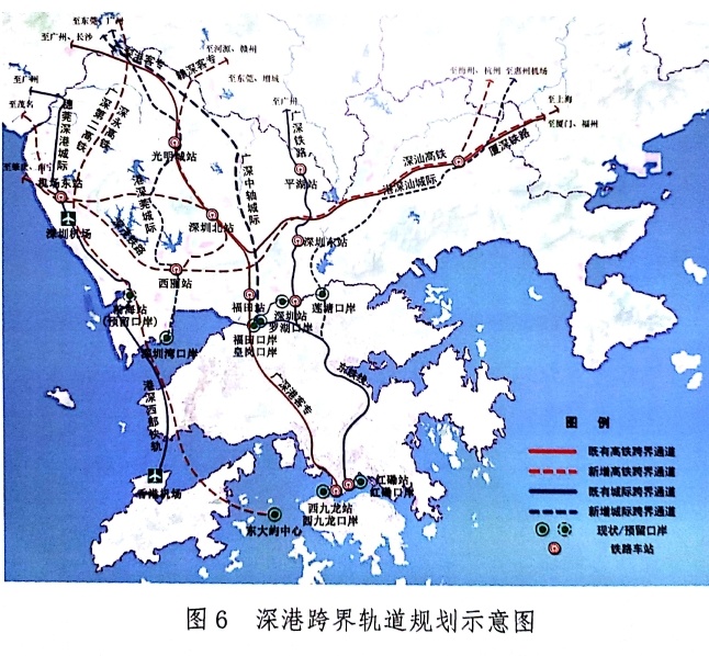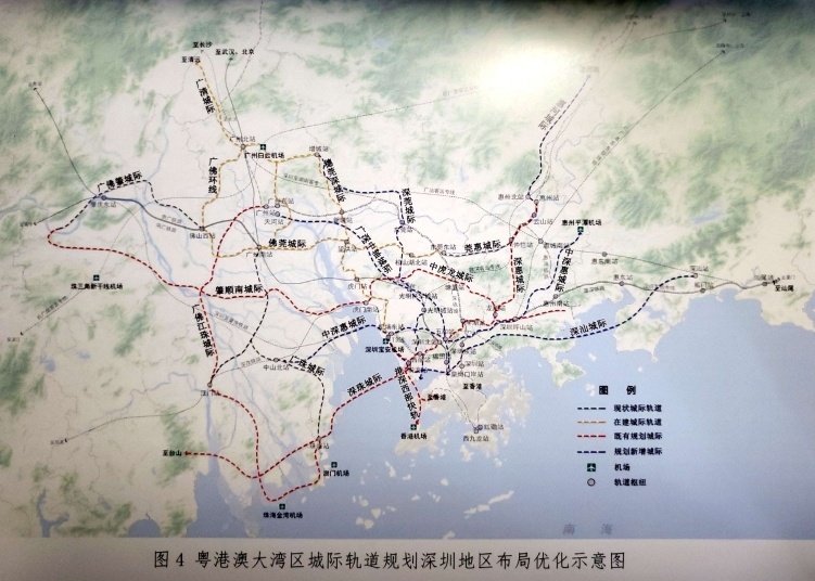 珠江东岸形成以深圳为中心的“三横四纵”城际通道体系,在既有的穗莞深城际、港深西部快轨、深惠城际、中虎龙城际、深珠城际基础上,研究新增中深惠、深莞、深广中轴、深汕等城际通道。