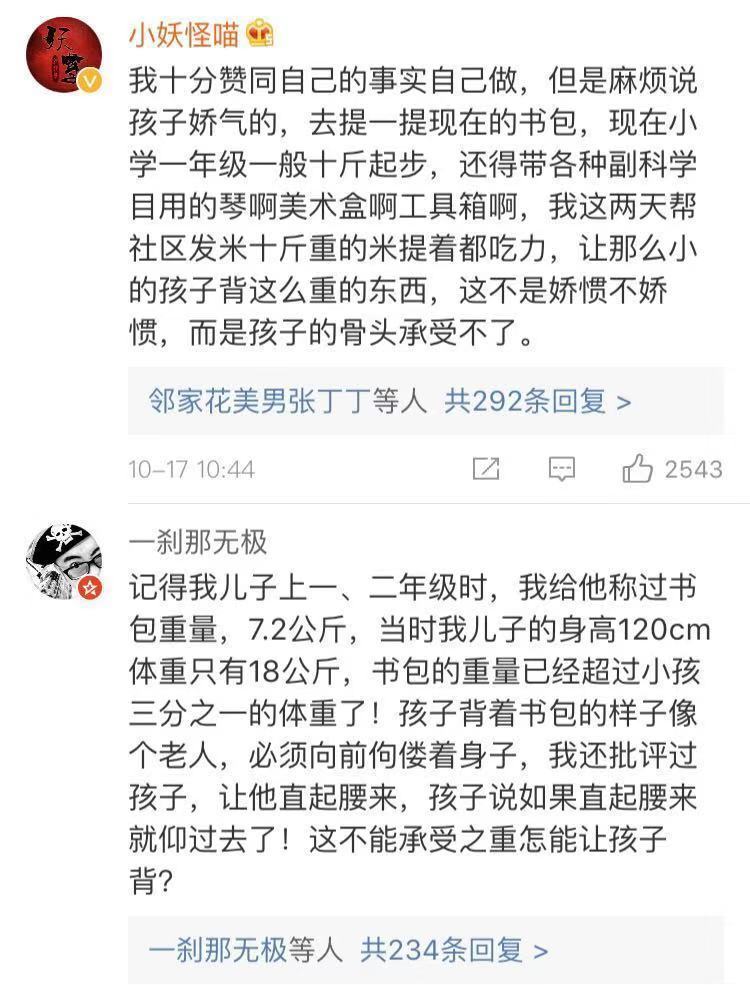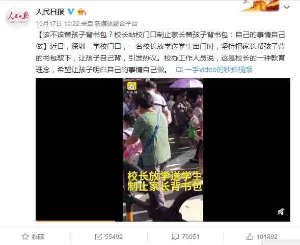 近段时间,“该不该替孩子背书包”成为了一个网络热议的话题。微博话题一经发布转发量迅速破5万条,评论更是破7万条。