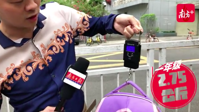 深圳小学生的书包到底有多沉?为了一探究竟,南方+记者拎着弹簧秤,在深圳随机街采了多位小学生,并为他们的书包称了下“体重”。