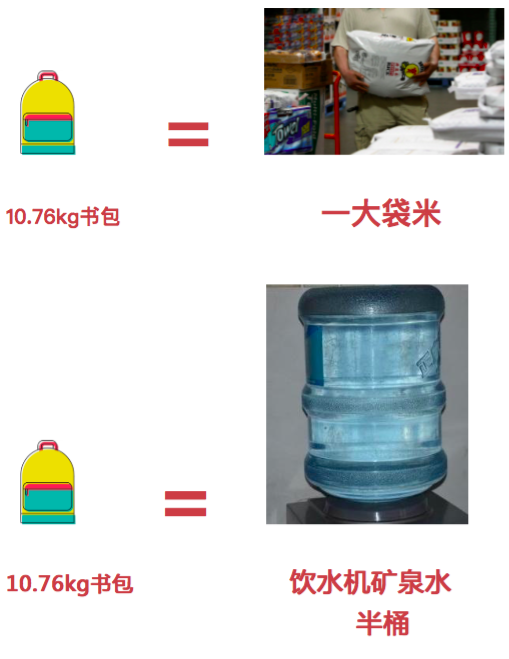 记者大致测算了一下,现在超市的大米大约是十公斤一袋。以此推算,这些小学生每天的负重约等于背了一袋大米在自己的身上。