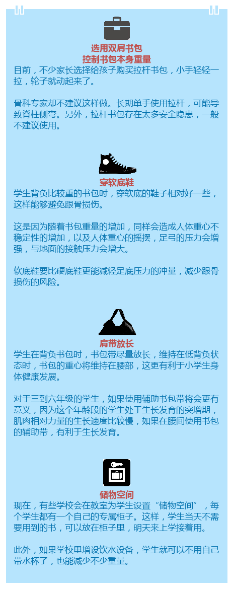 如果负重20分钟,脊柱压缩竟然可达6-8毫米。长期如此对孩子身体的伤害可想而知。