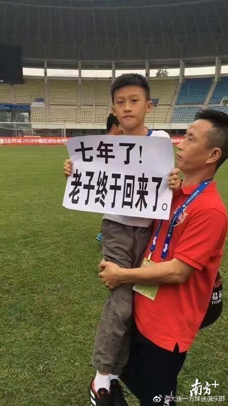 现场一个生动细节引起球迷和网友注意。7年前一对深圳球迷父子曾经打出标语“老子会回来的”,结果当天,这对父子再度同框打出横幅,“老子终于回来了!”