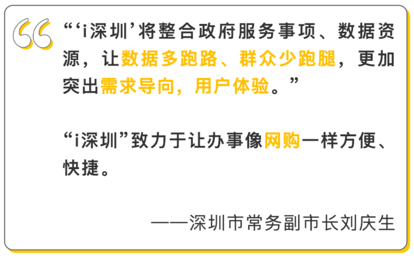 据悉,打造“千人千面”服务模式,提供精准推送、个性化订阅、智能个人门户等功能,真正实现“一屏智享生活、一号走遍深圳”,是深圳市统一政务服务APP“i深圳”的目标。