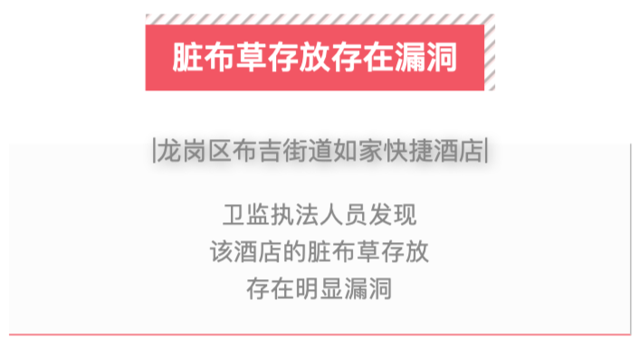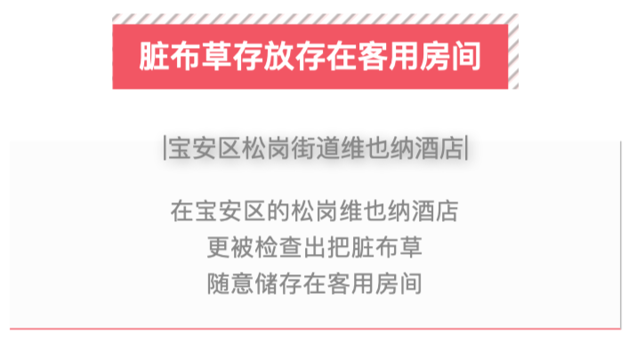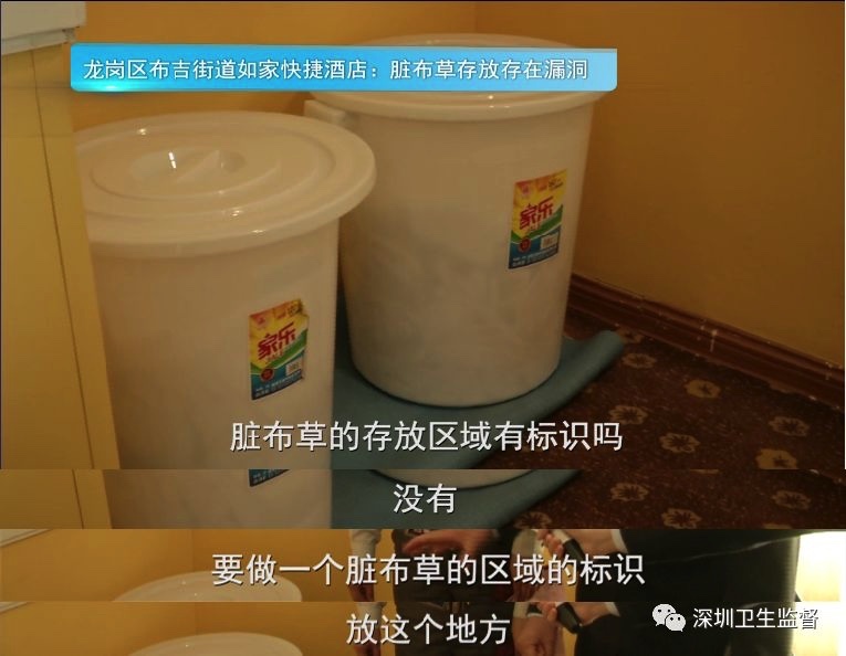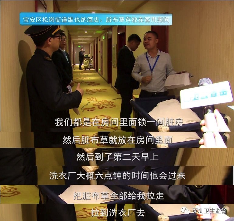 酒店人员表示,会将脏布草锁在一间客用脏房里面,等第二天早上洗衣厂来将其拉走。“脏布草存放在客用房间的做法完全不符合规定,极易造成交叉污染。”卫监执法人员指出。