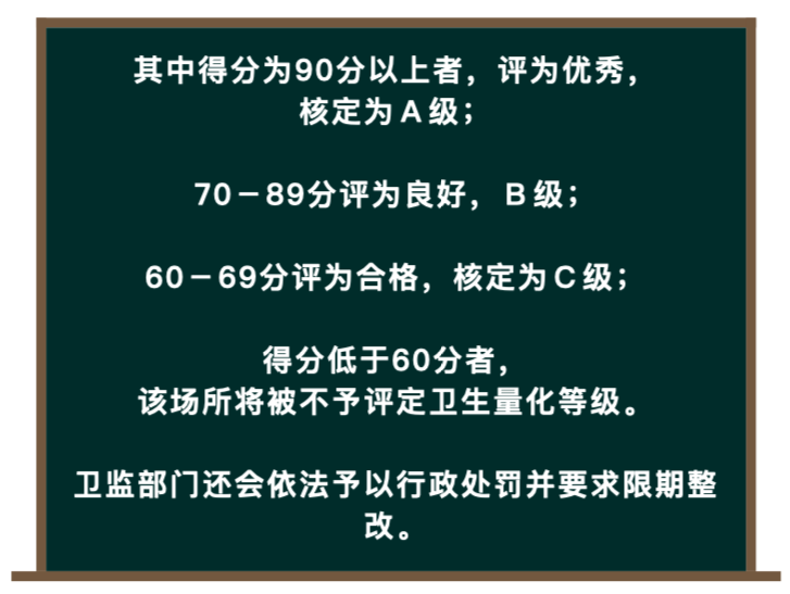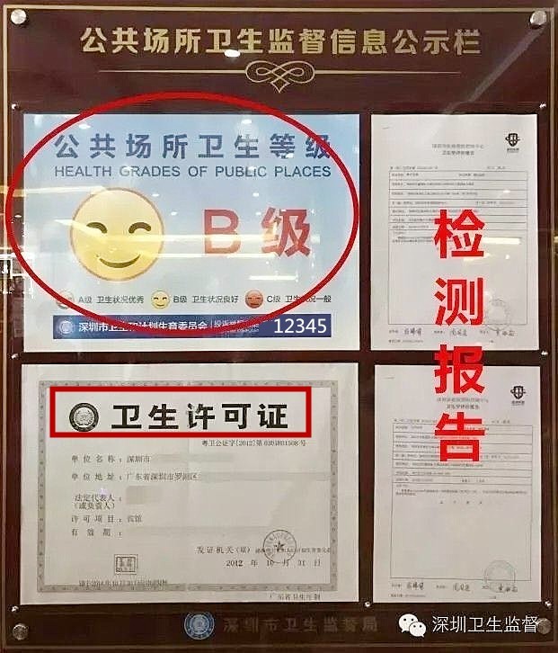 卫生许可证、检测报告和卫生监督量化等级。特别是卫生监督量化等级,市民朋友可以通过它来简单快速判断这个场所的卫生状况。