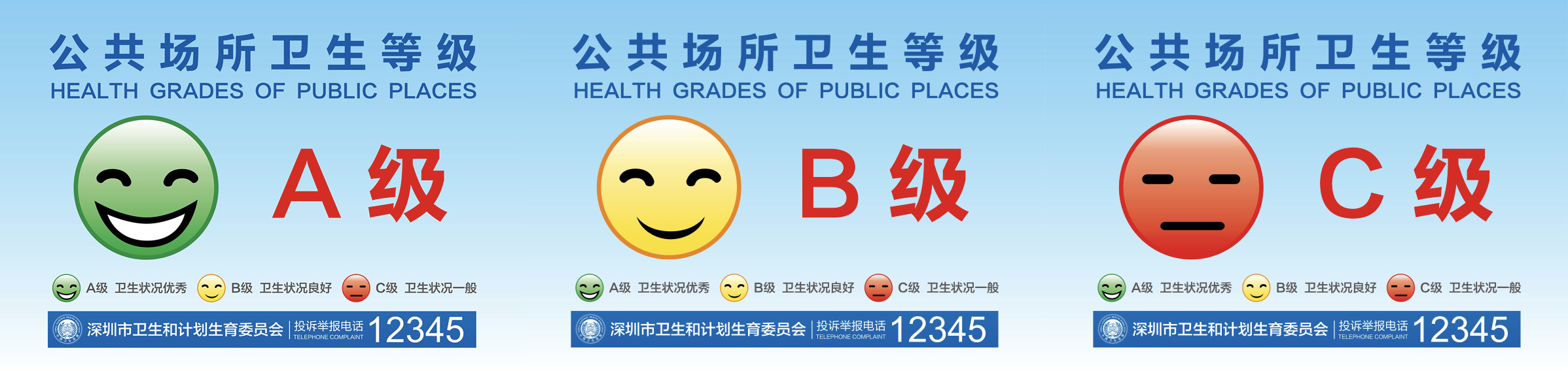 住宿场所的量化等级与游泳场所一样分为3个,卫生等级最高A级是绿色“大笑脸”,B级是黄色“微笑脸”、C级是红色“平脸”。