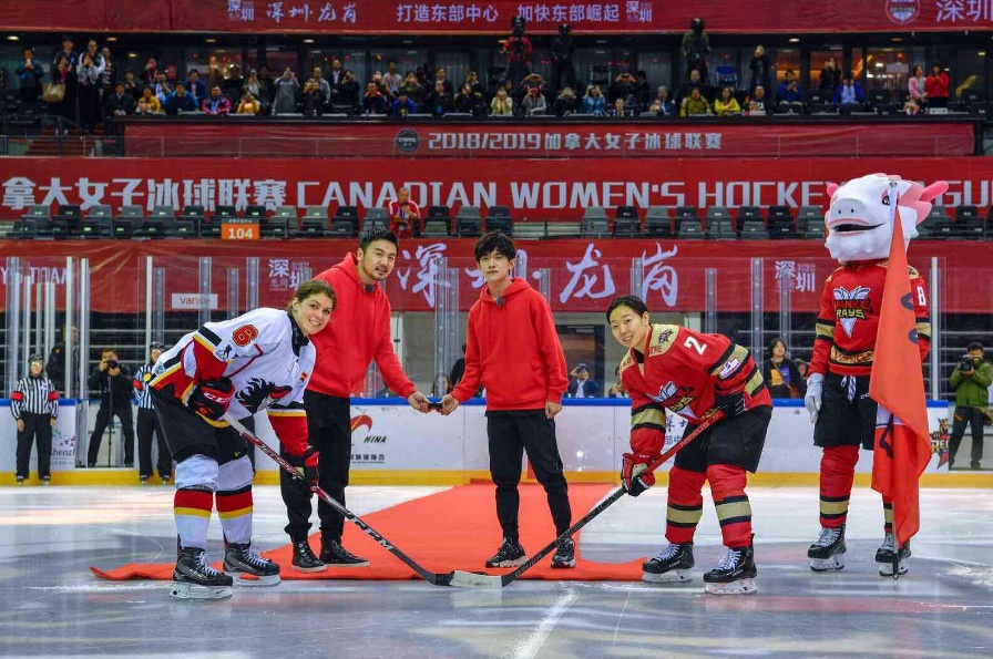 同时,《大冰小将》剧组也参与了CWHL加拿大女子冰球联赛录制,吸引了众多球迷到大运中心观赛。作为国家冰雪运动推广大使的易烊千玺和《大冰小将》节目金牌经理人雷佳音还担任了当场的开球嘉宾,16名小将们来到现场给姐姐们加油打气,一起为冰雪运动加油助力。