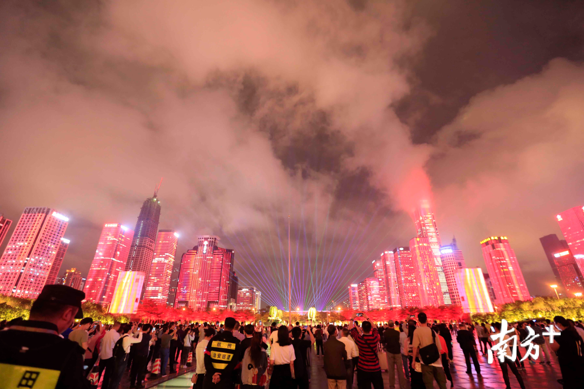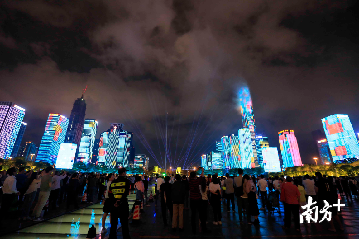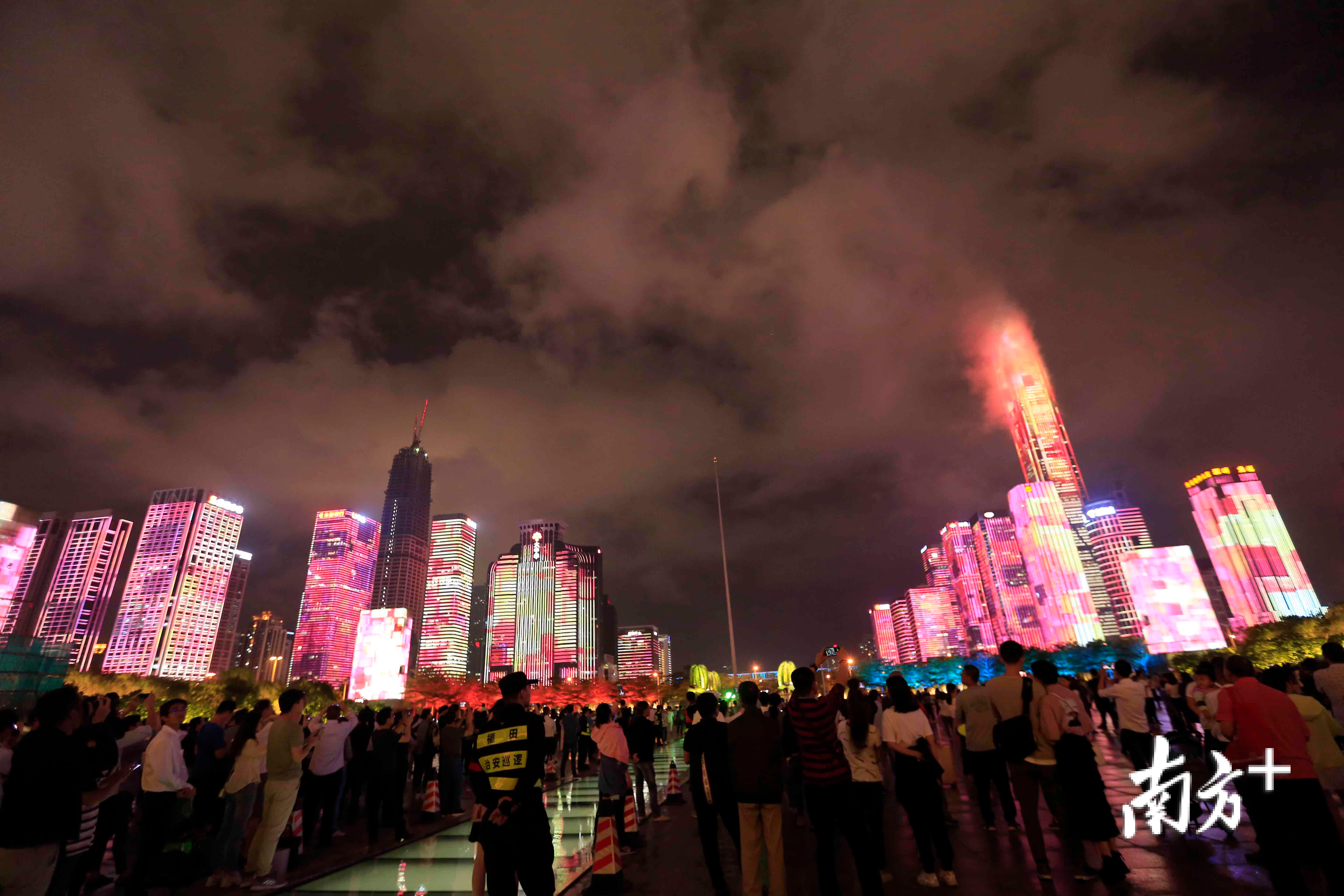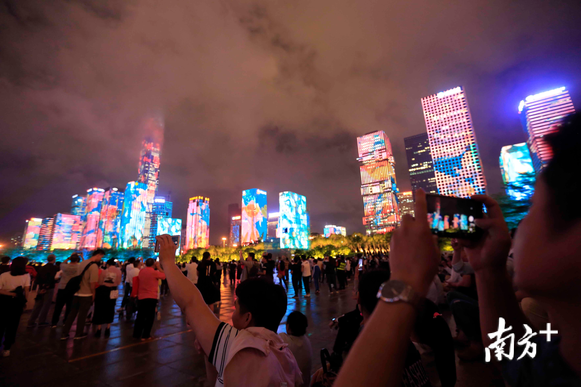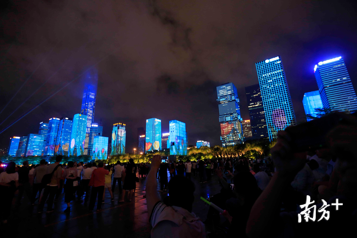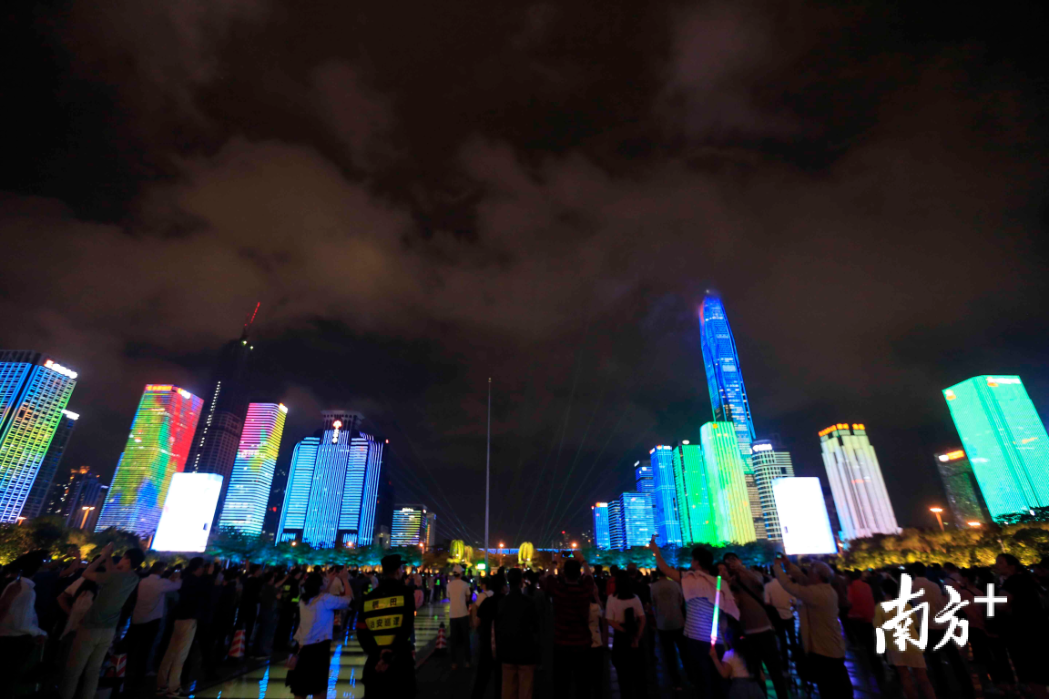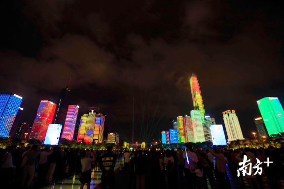 深圳中心区灯光秀自3月29日起,周五、周六及国家法定节假日,每晚表演三场,时间分别为19:30、20:30、21:30