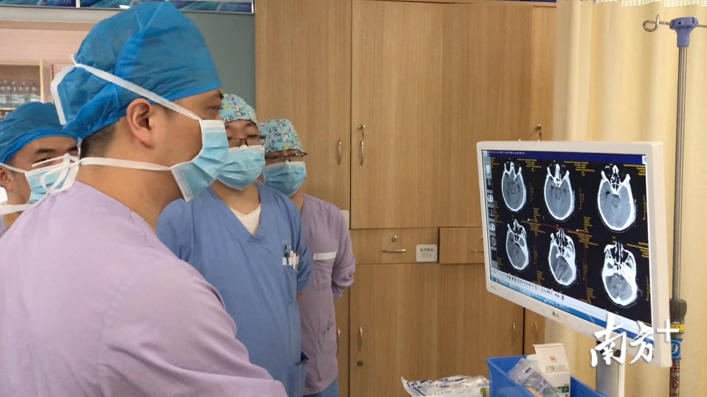 他赶到办公室,快速从电脑系统里调出该病人的CT检查片和病历。“病人脑部出血量比较多,开始出现血肿,需要立即手术。”他一边翻阅片子,一边安排其他医护人员通知手术室。