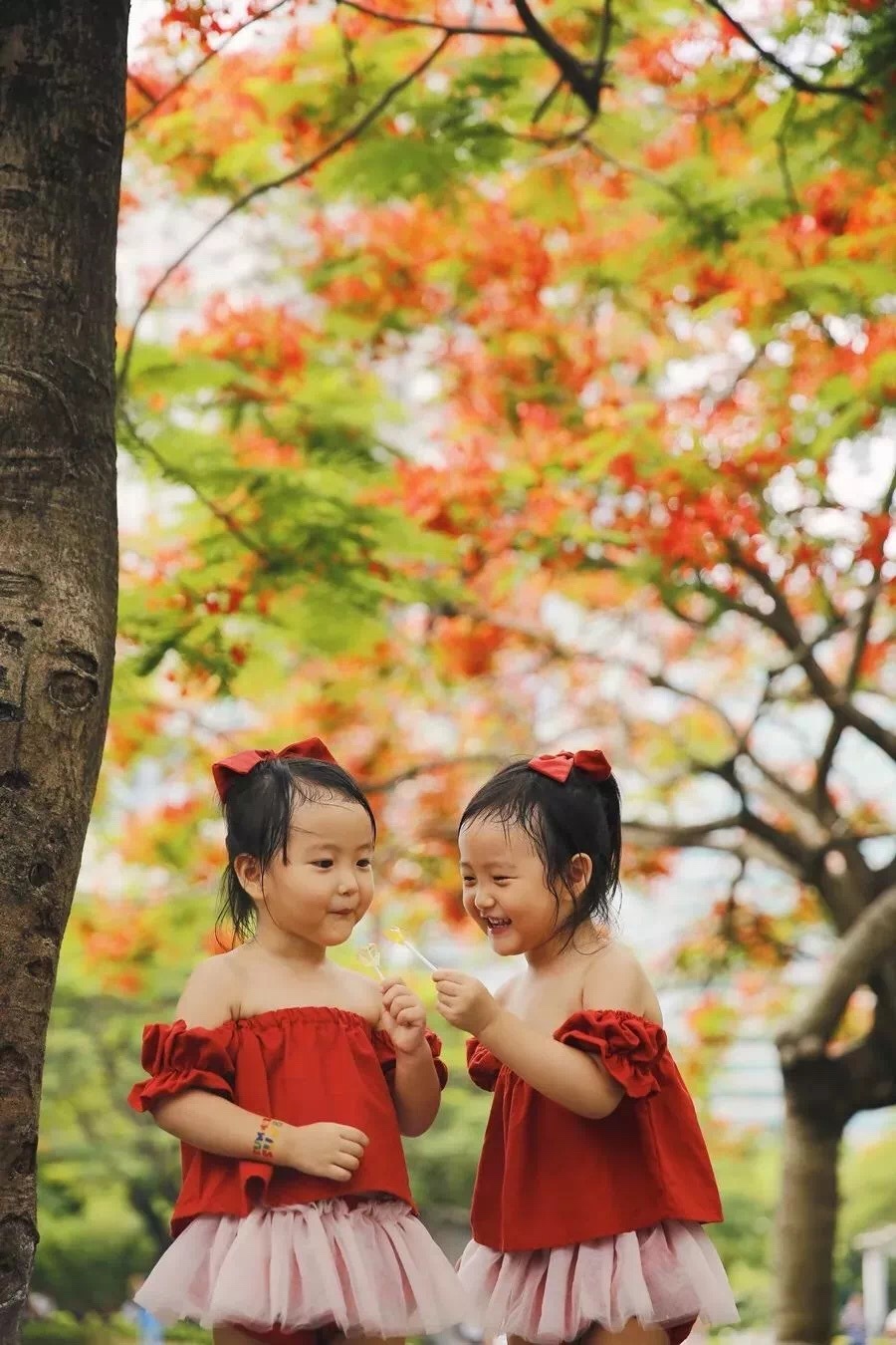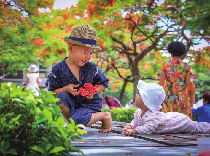 《凤凰花开栖枝头,盈盈嫣红戏童颜》