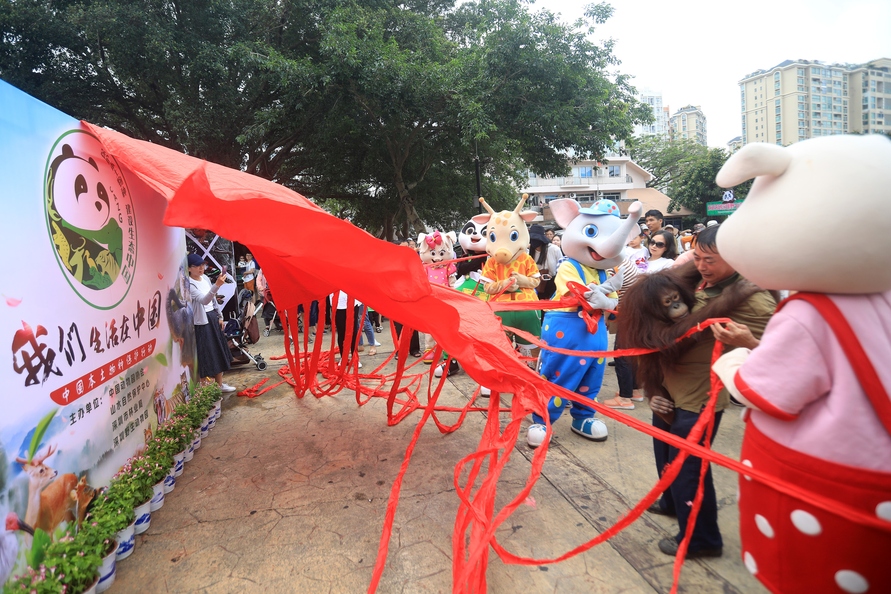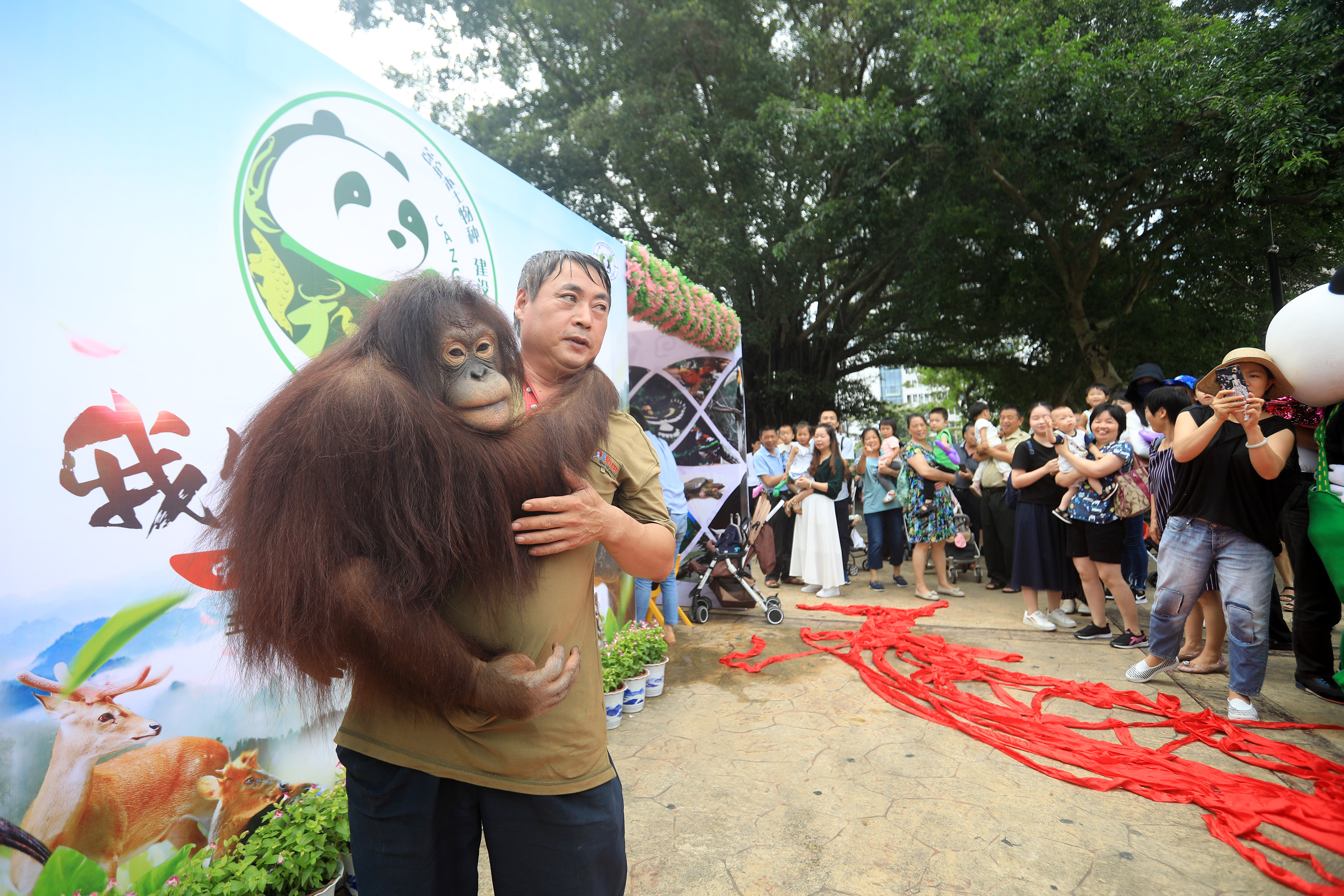 参与启动仪式的还有一位明星级神秘嘉宾——该园的红毛猩猩“毛毛”在饲养员的带领下现身参与揭幕,它的出现迎来阵阵欢呼声,赚足游客眼球,将活动推向高潮。