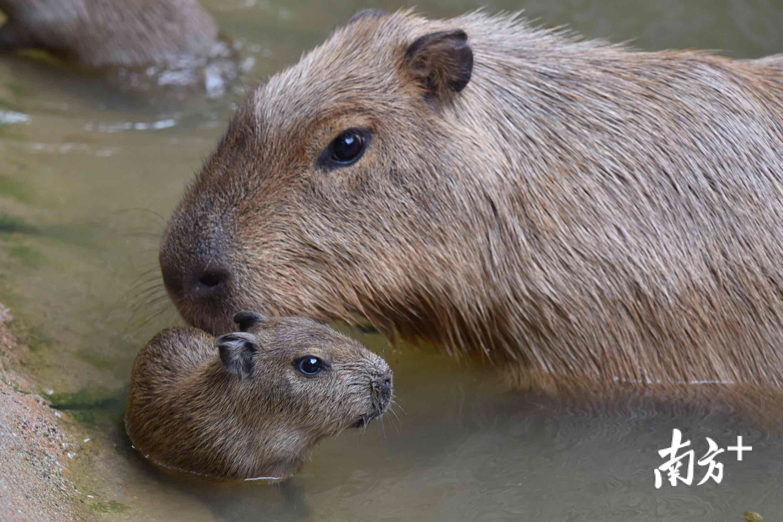 据悉,水豚是一种半水栖的食草动物,也是世界上最大的啮齿动物。善游泳和潜水,在水中交配,孕期约150天。深圳野生动物园去年9月引入了水豚,水豚家族在深圳和睦地生活在一起,自由恋爱,如今有了它们的“深二代”。