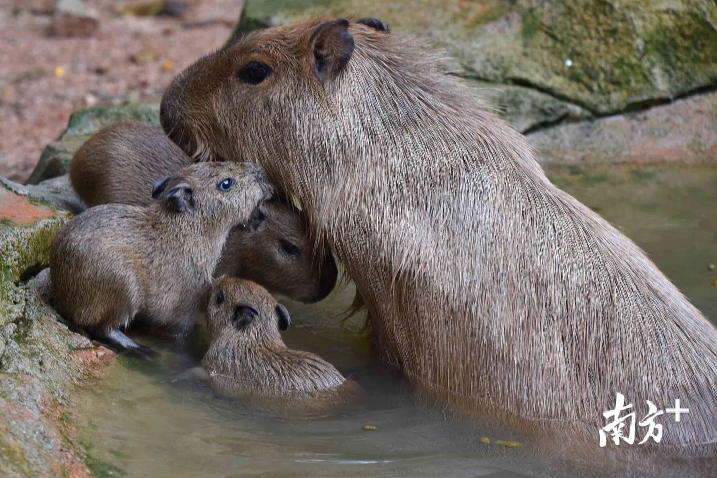 6月24日,深圳野生动物园传来喜讯,一只雌性水豚一胎产下4仔,初生的水豚萌宝健康活泼,可以灵活跑动,体重均为约1公斤。据悉,这是该园首次繁殖水豚。
