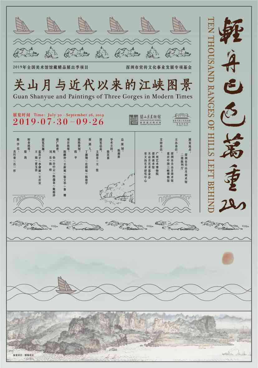 长江,作为中华民族的母亲河,一直以来都是历代文人墨客吟哦的对象,也是画家们追摹与表现的重要题材。7月30日至9月26日,关山月美术馆以馆藏关山月《江峡图卷》及其晚年表现长江三峡的画作为基础,携手重庆中国三峡博物馆,推出“轻舟已过万重山——关山月与近代以来的江峡图景”展览。同时该展已入选国家文化和旅游部“2019年全国美术馆馆藏精品展出季”。