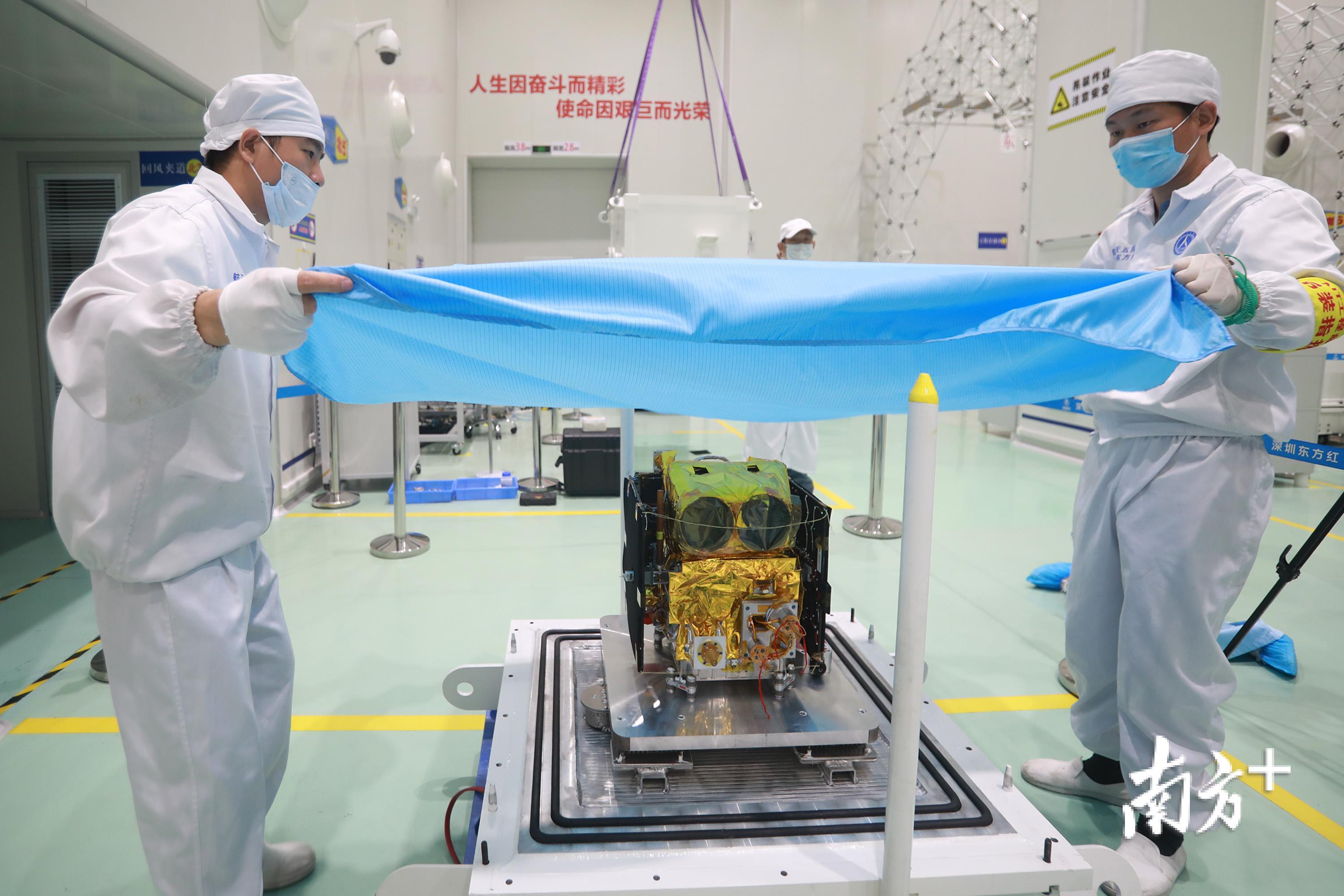 拧上旋钮,贴上防护罩……8月14日,全球变化科学实验卫星系统(京师一号卫星,代号BNU-1)在深圳航天东方红海特卫星有限公司打包装箱,近日将运往太原卫星发射基地择机发射。