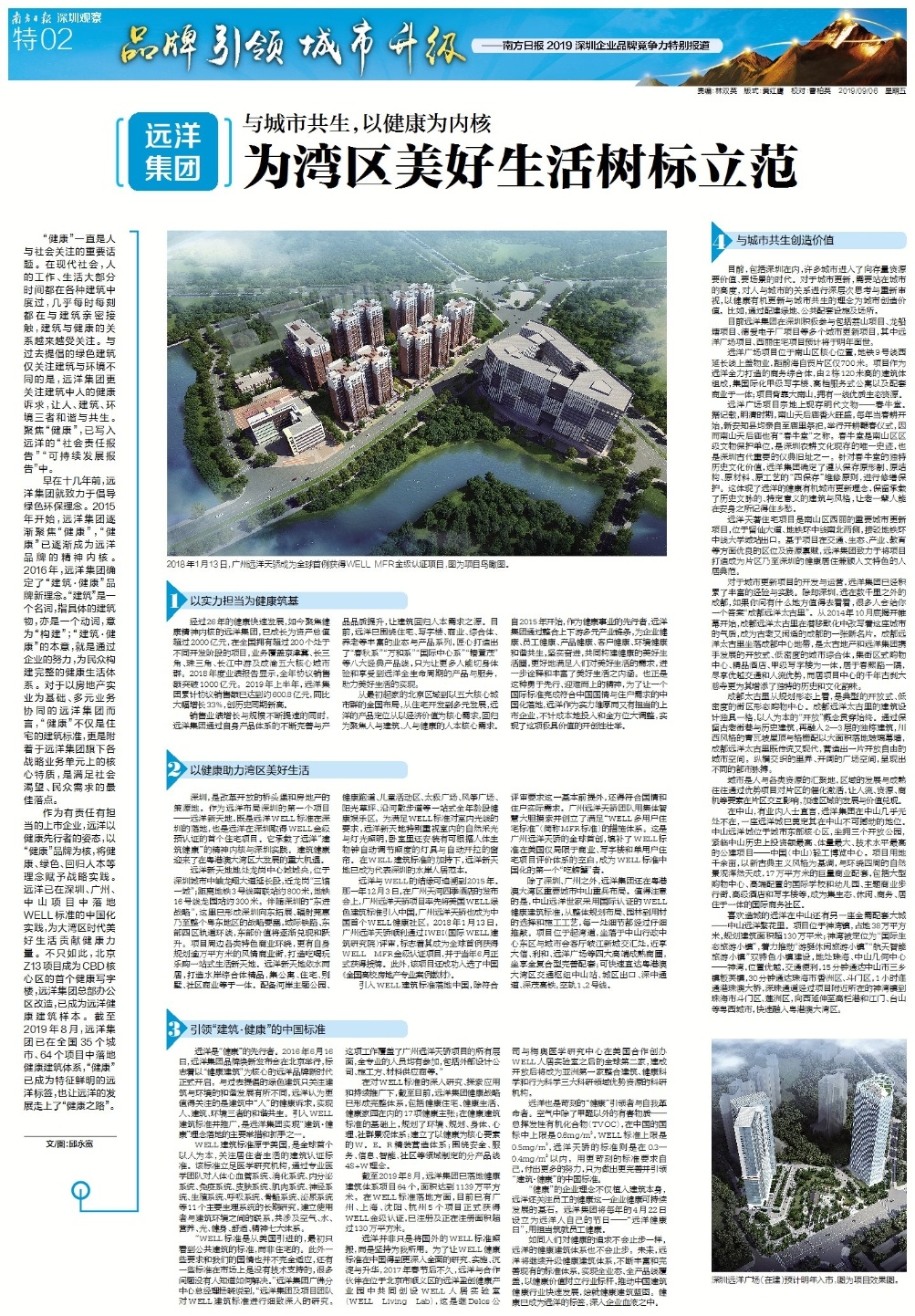 截至2019年8月,远洋集团已落地健康建筑体系项目64个,面积达到1139万平方米。在WELL标准落地方面,目前已有广州、上海、沈阳、杭州5个项目正式获得WELL金级认证,已注册及正在注册面积超过130万平方米。