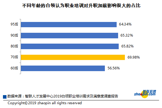 70后认为培训对升职加薪影响最大,超五成白领参加过职业培训