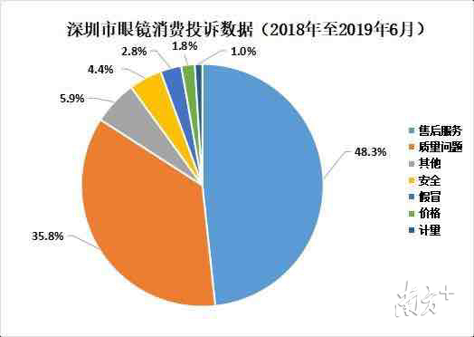 据悉,2018年到2019年6月深圳市消费者委员会累计收到关于配装眼镜的投诉共277宗。投诉反映的问题主要集中在产品质量问题和售后服务,占比分别是35.8%和48.3%。