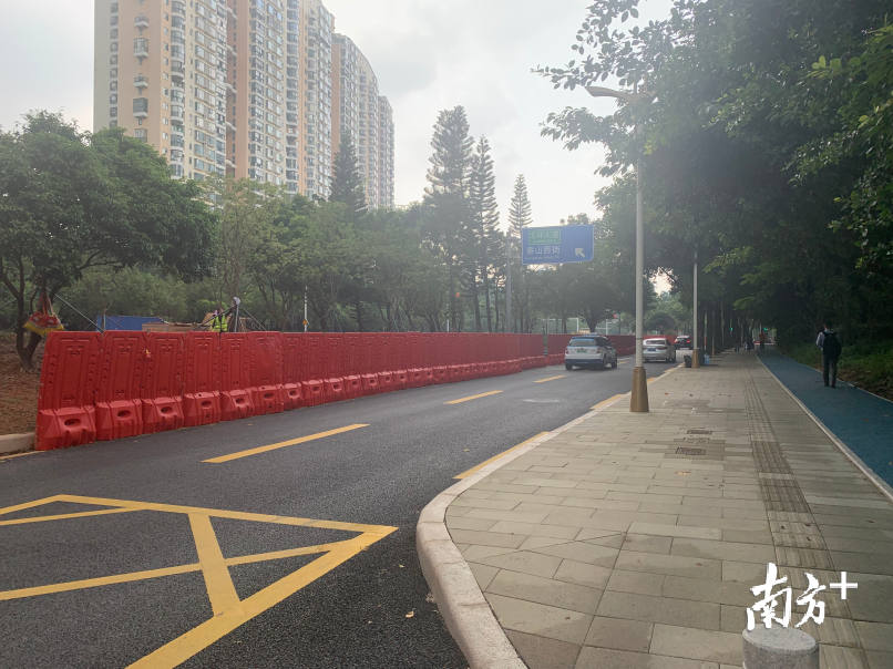 小南在现场看到,侨香路南山段道路两侧的绿化带都拉起了红色的围挡,绵延数公里。工人们正在紧张地施工,大片泥土在绿化带内堆积成小山,路口处的花圃内种植上了新的景观植物。还有不少还没种植的植物被摆放在路旁。