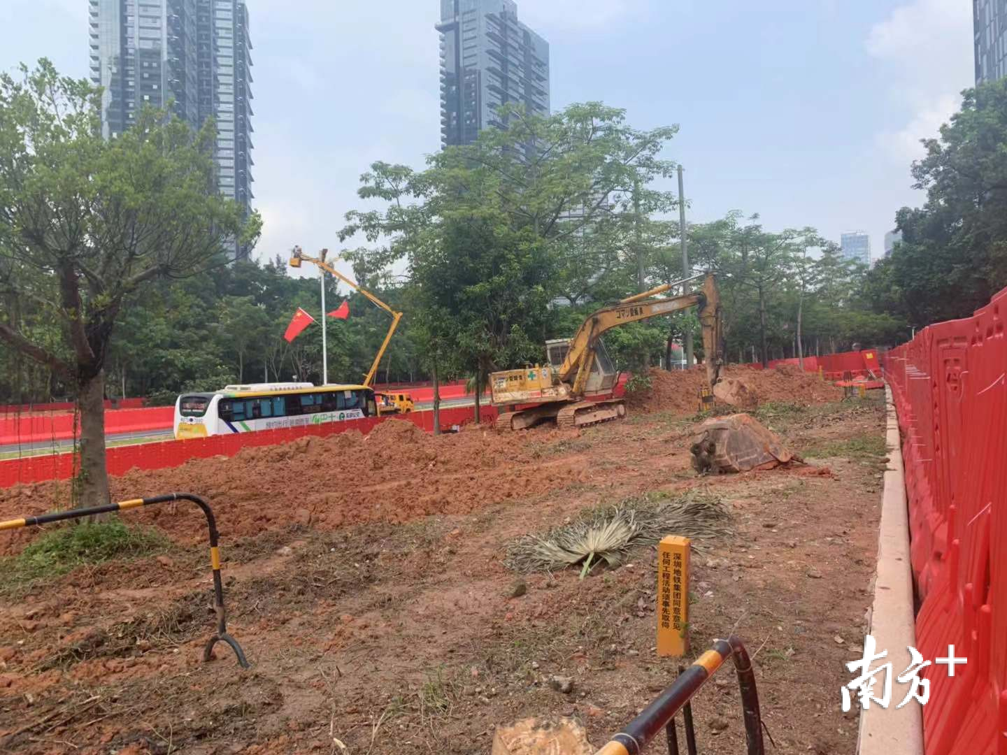 在附近工作的谢先生表示,每天从侨城北地铁站出来,总能闻到浓烈的臭味,中午还能看到工人躺在人行道上休息,“雨季路面泥泞污浊,晴天时车辆经过扬尘严重。施工车辆进进出出,也对其他车辆、行人带来安全隐患。”