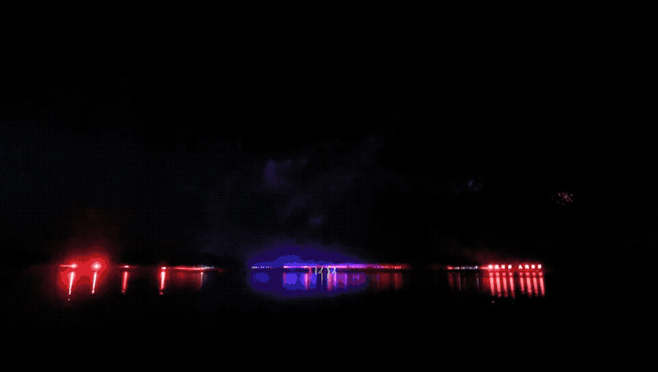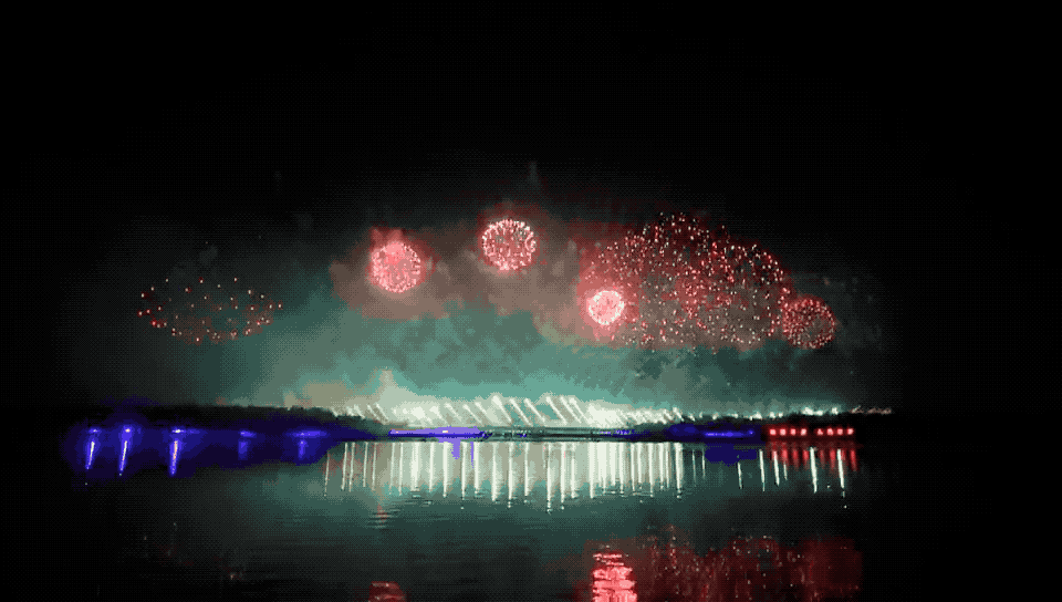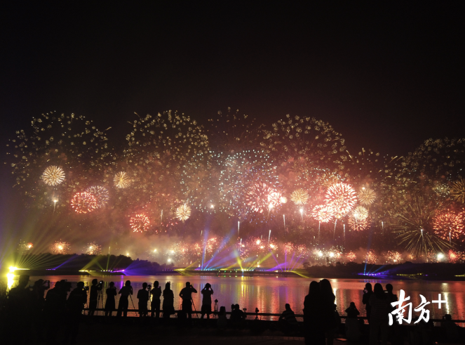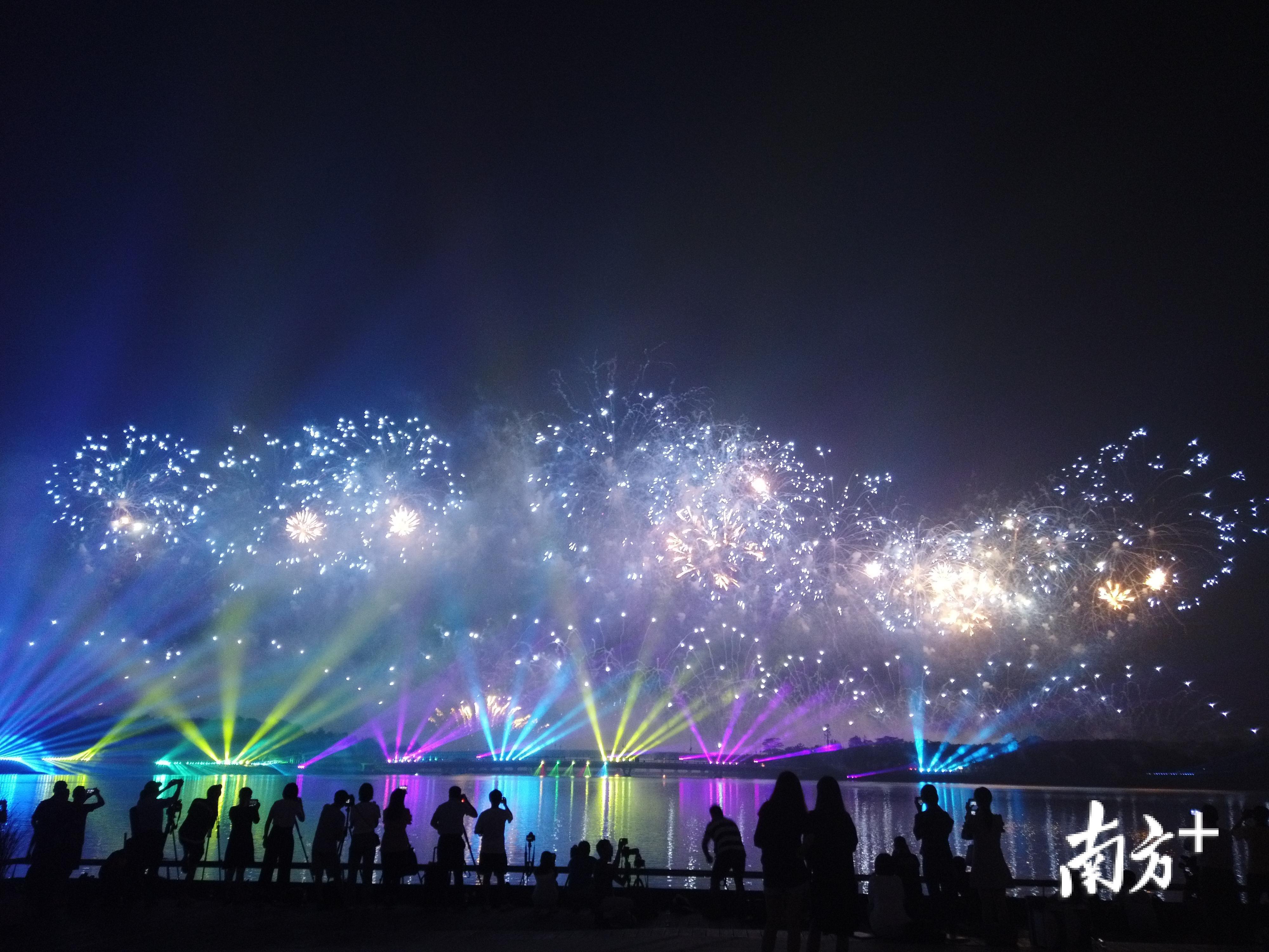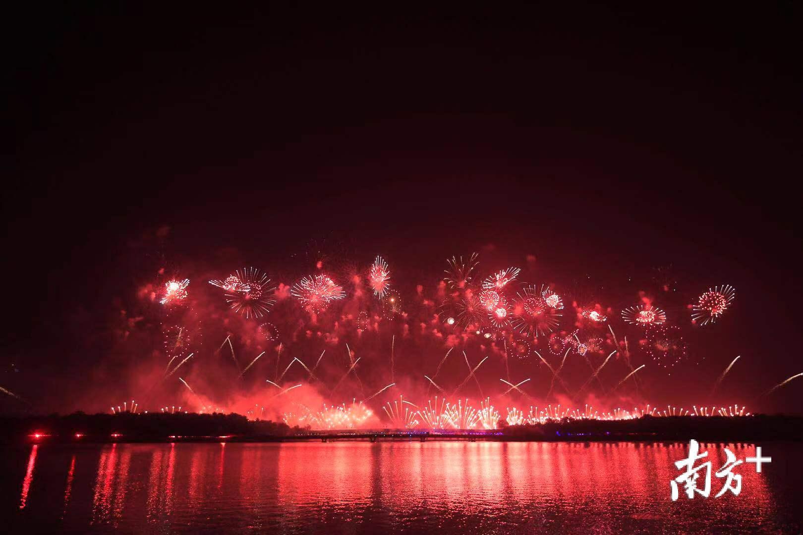 呈现出一场集焰火、楼宇灯光秀、湖面激光秀等为一体的绚丽视觉盛宴