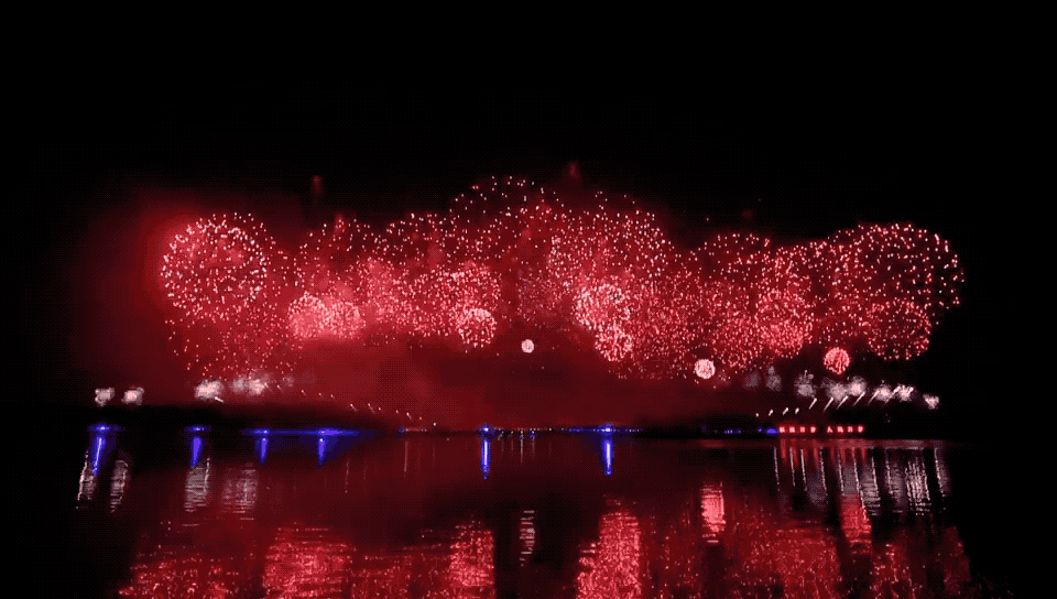 通过最新的焰火技术、光影艺术和新媒体艺术的跨界融合