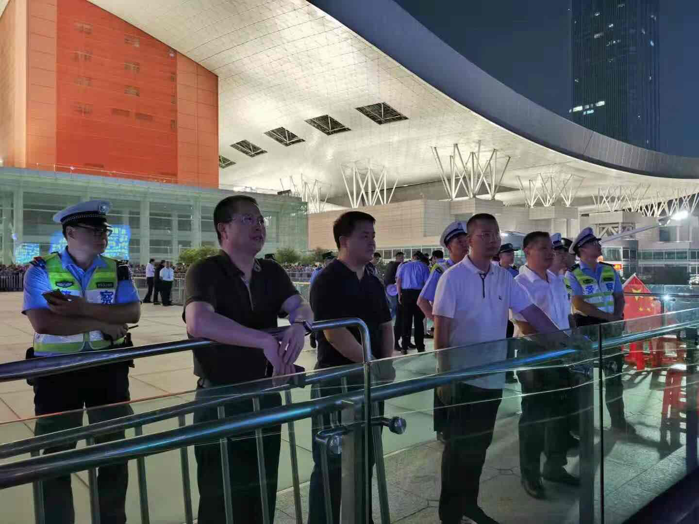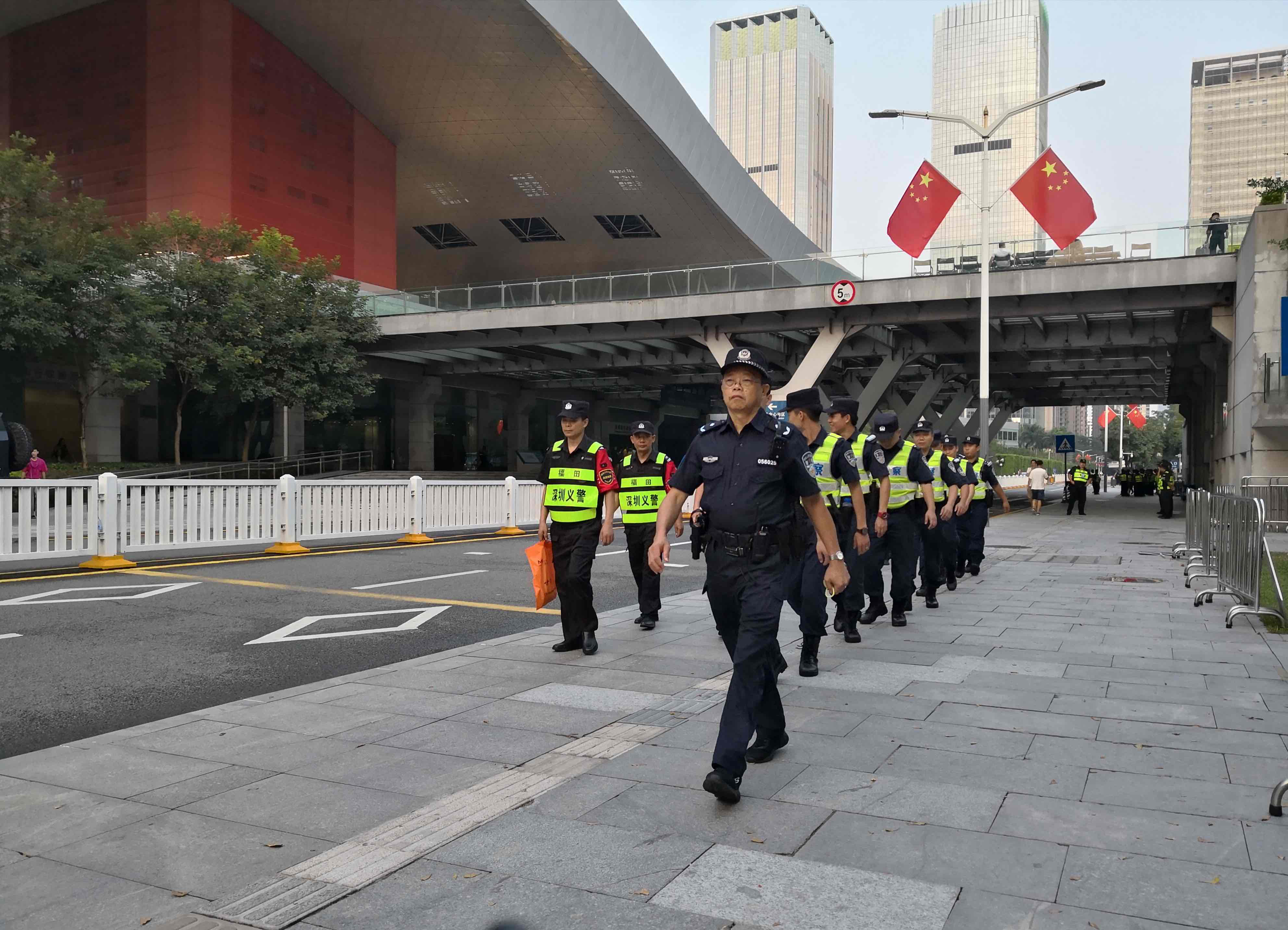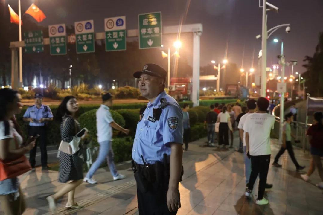 同样坚守岗位的还有深圳市公安局福田分局的警察们。为保障市民平安、有序地观看国庆特别版“灯光秀”, 福田公安分局实地勘察、严密规划人员进出流线、 周密制定安保工作方案,联合公交分局、福田交警大队、福田区城管局,多次现场推演、逐一排查安全隐患,做到地面地下治安交通联勤联动。