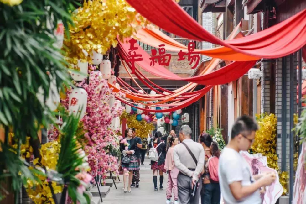 除了独特的客家记忆外,博客小镇还引入了超强IP“幸福场”,将近6000平的川西老街改造为成都80年代的老场镇,再现复古老家具、老店招、老街景,带来沉浸式赶场体验,同时,小镇还引入了年轻人喜欢的古风二次元,提供服化道的全套体验。相信在这里,你能穿越的不仅仅是时空,还有次元壁!