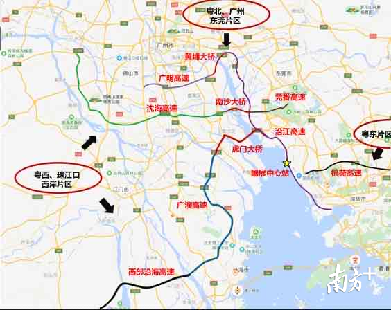 1、粤西及珠江口西岸车友可通过沈海高速,西部沿海转广澳高速经虎门大桥或南沙大桥转广深沿江高速南行至国际会展中心站前往会展片区;粤北、广州、东莞车友可通过黄埔大桥、南沙大桥及虎门大桥转广深沿江高速南行经国际会展中心站前往会展片区;惠州、河源及潮汕等粤东地区、龙岗片区车友可通过惠盐、惠河及揭博高速转深圳机荷高速,经黄鹤收费站转107国道至凤凰立交,西行沿凤塘大道前往会展片区。
