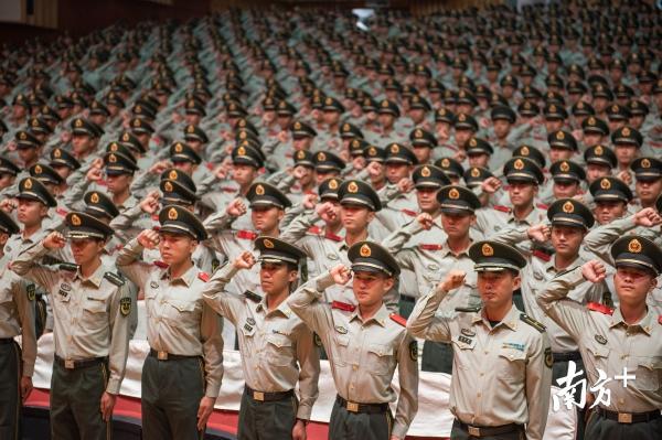 “我是中国人民武装警察,我宣誓! 服从中国共产党的领导,全心全意为人民服务,服从命令,严守纪律……”近日,在武警深圳支队新训点,800余名新兵面对武警部队旗庄严宣誓,正式成为武警部队一员,授予列兵军衔。
