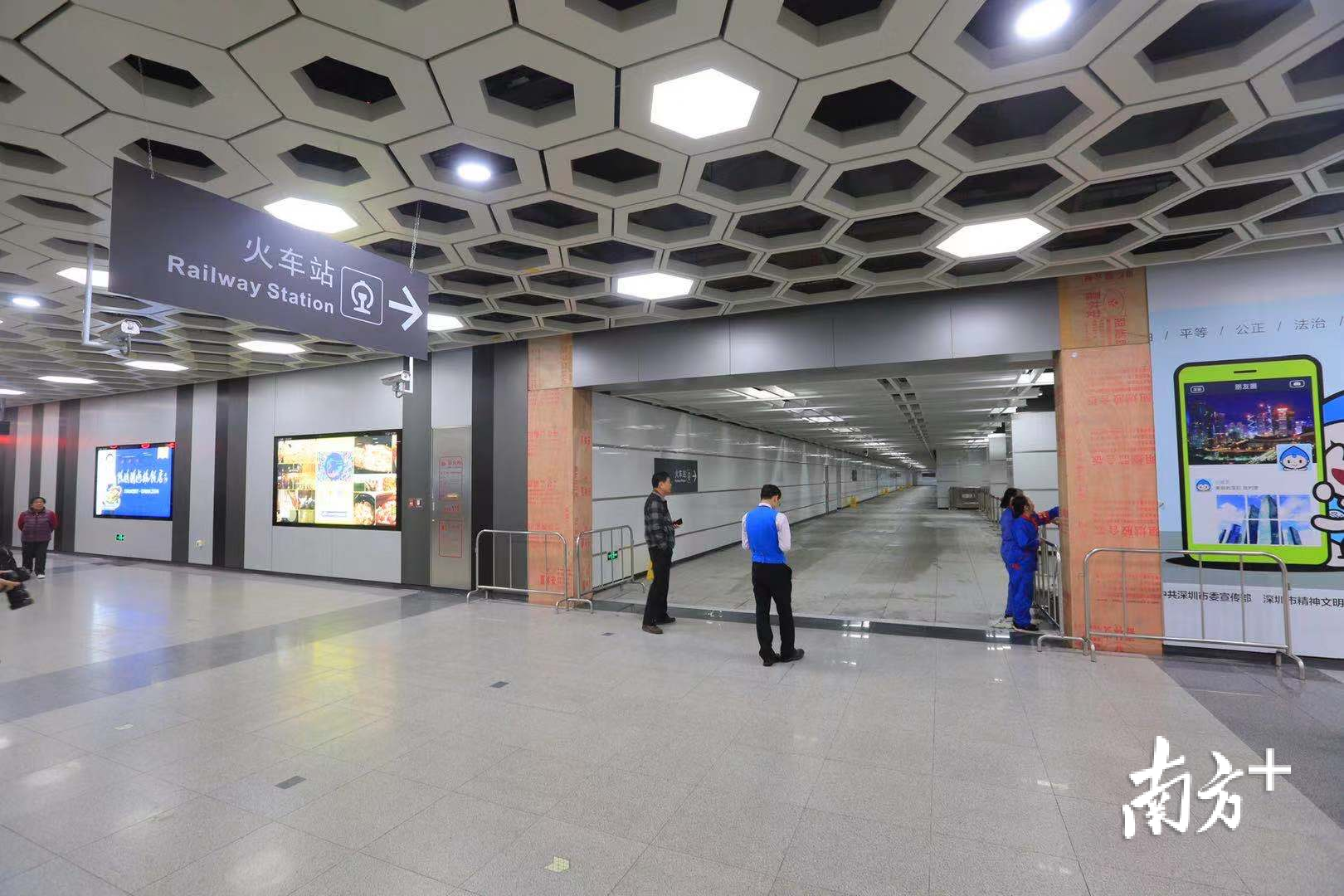 同样从深圳机场航站楼去往穗深城际深圳机场站,也是要先下到深圳地铁11号线机场站的站厅,通过连接通道走过去