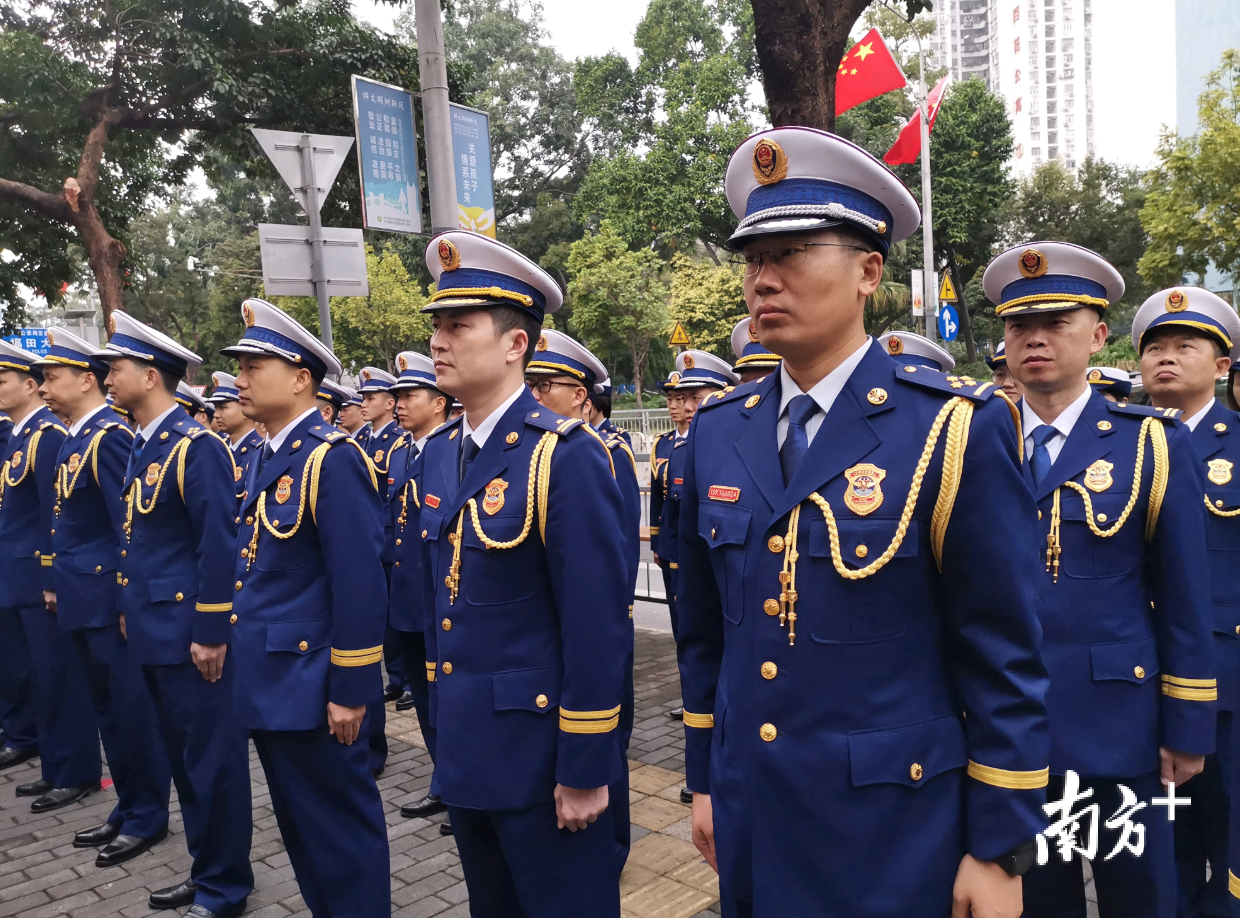 挂牌仪式现场,深圳市应急管理局、市公安局、市住建局、市委编办、市财政局、市发改局等单位领导,市消防救援支队党委班子成员,支队机关全体干部和基层消防指战员代表共计150余人参加仪式。