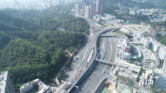 工程主线开放通行后将为深圳中部提供便捷的快速公交走廊,同时将减少梅林关、清平高速公路的交通压力,深圳市中心至坂田的通行时间将缩短至12分钟。