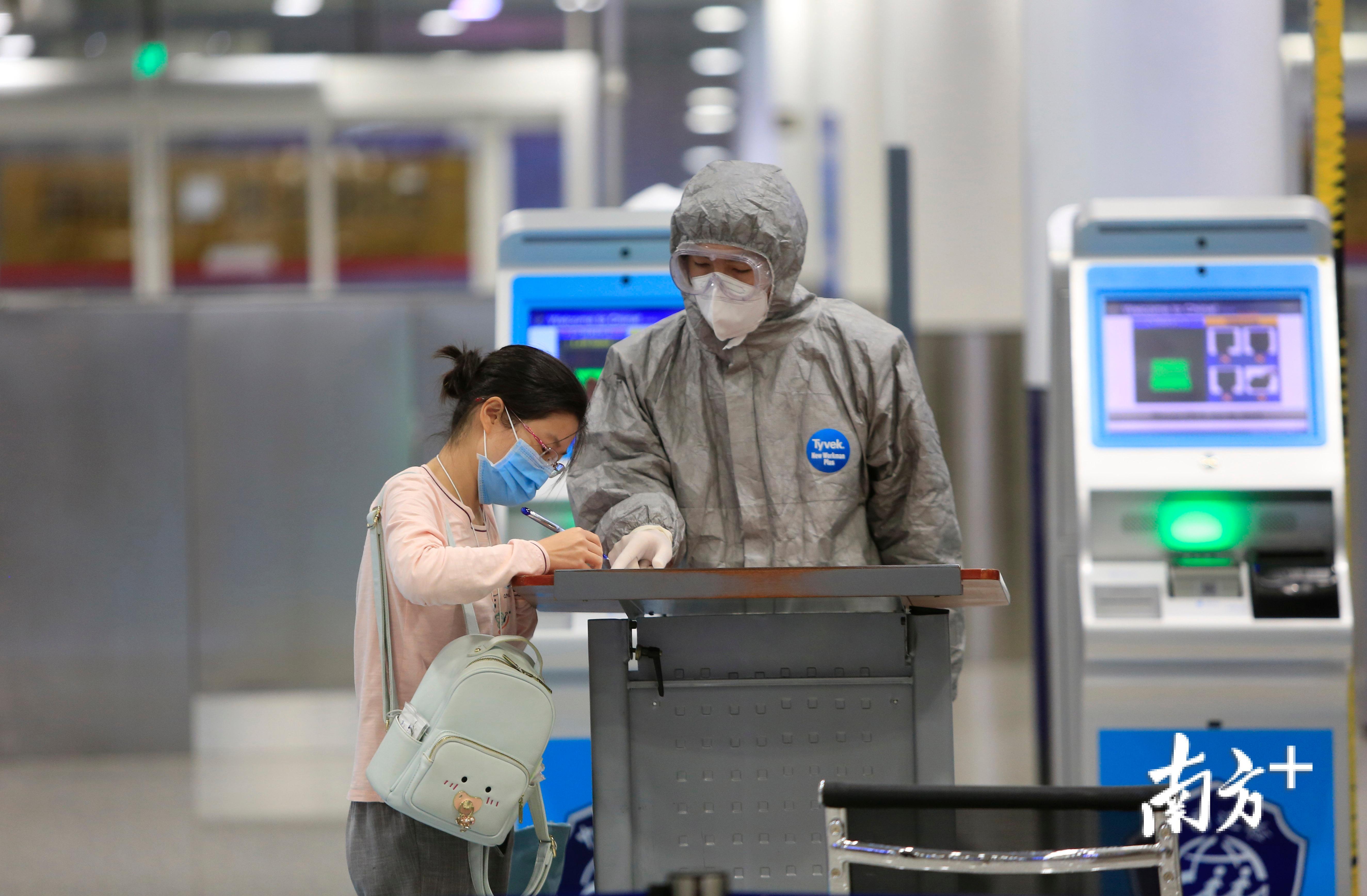 深圳机场出入境边防检查站边防检查处处长苏晓珠介绍,边检早在航班到达前通过API大数据获取了旅客的信息,提前分析排查,便于落地实施分区域验放。入境手续办理过程中,边检人员会加强询问核查旅客重点疫情国家和地区旅居史 ,便于第一时间了解情况和旅客入境后管理工作。